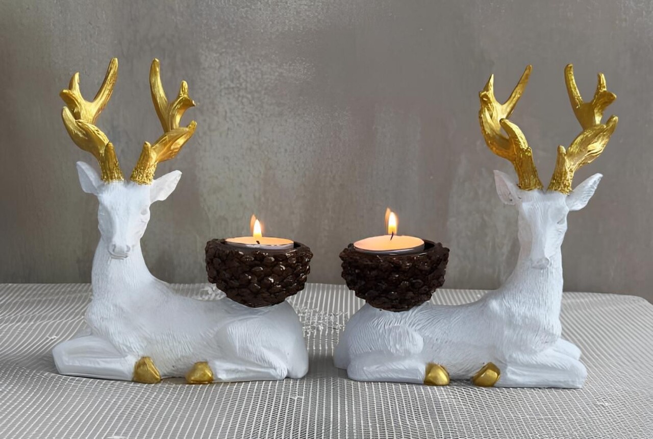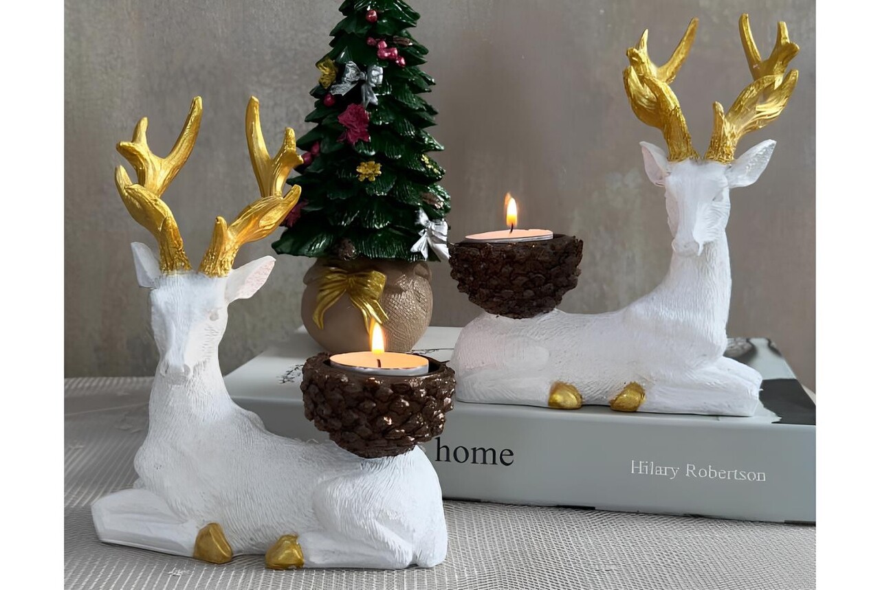 Set suporturi lumanari, CY0694, Poliester, Alb