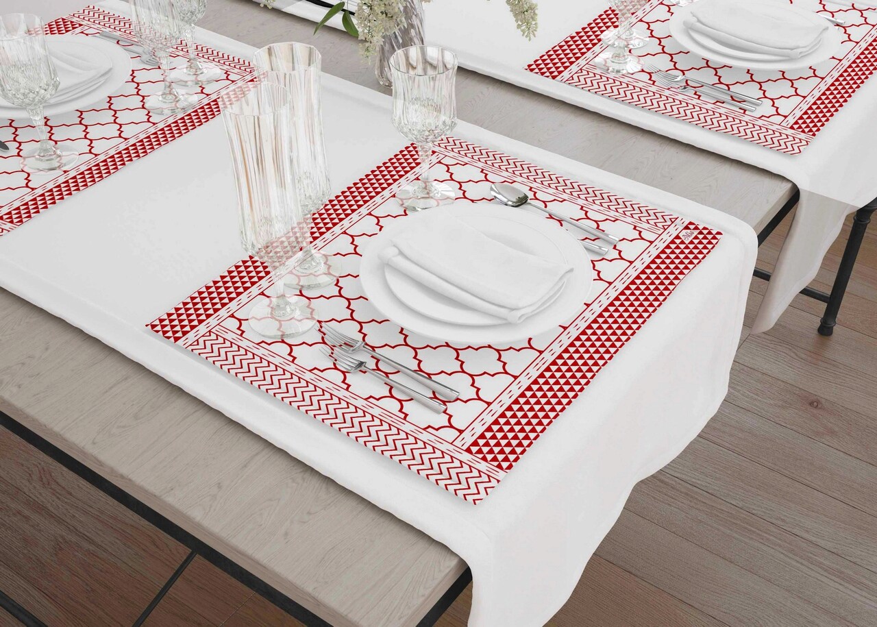 Set suporturi pentru farfurie, Mia, 742TMA7807, Poliester, Rosu/Alb