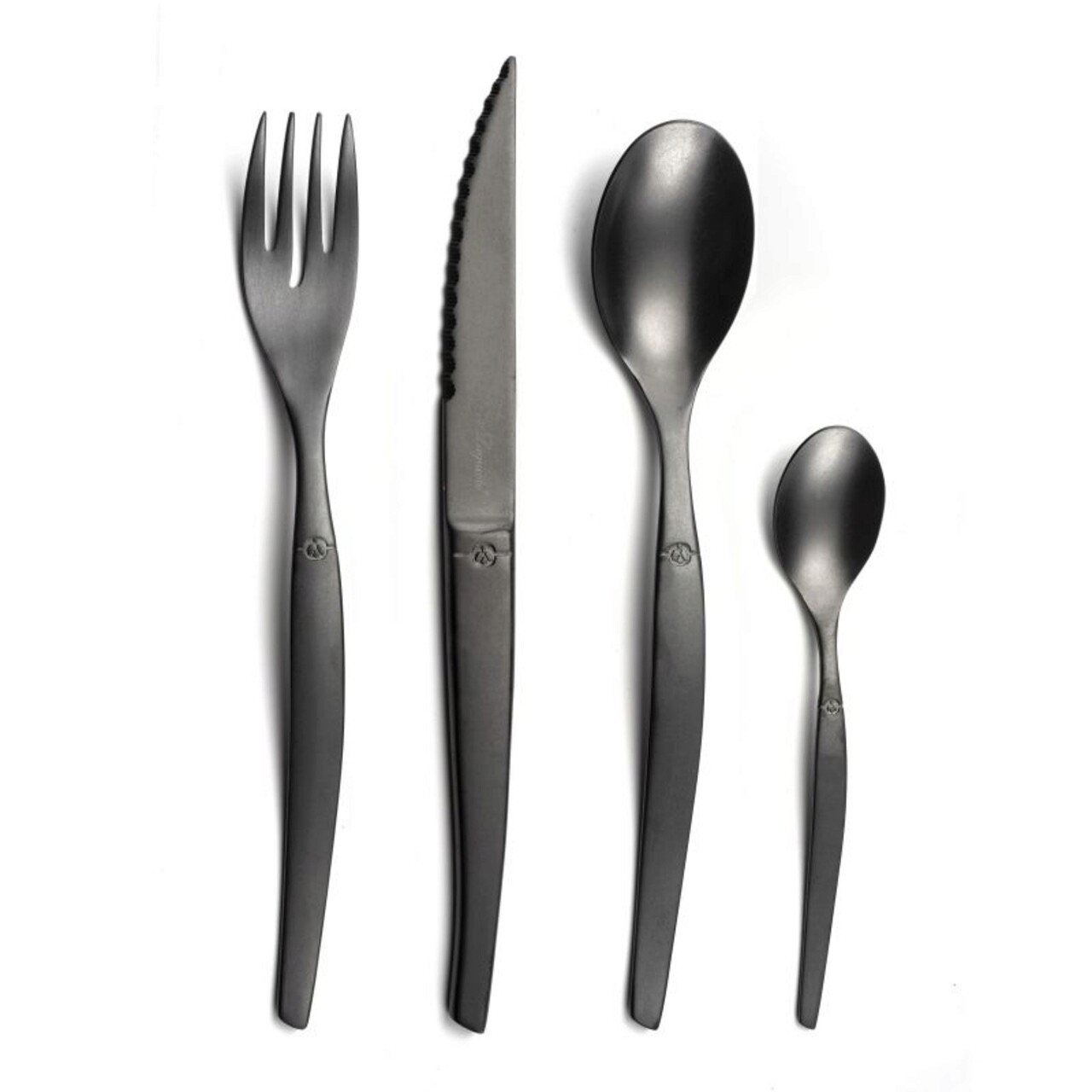 Acest set de tacamuri este format din 16 piese din otel inoxidabil: 4 cutite de masa, 4 furculite de masa, 4 linguri si 4 lingurite medii. Forma traditionala si finisajul negru confera acestui set un aspect unic. Fiecare set de tacamuri Jet se poate spala in masina de spalat vase, iar otelul inoxidabil utilizat in fabricarea tacamurilor, ofera o rezistenta ridicata la coroziune.
