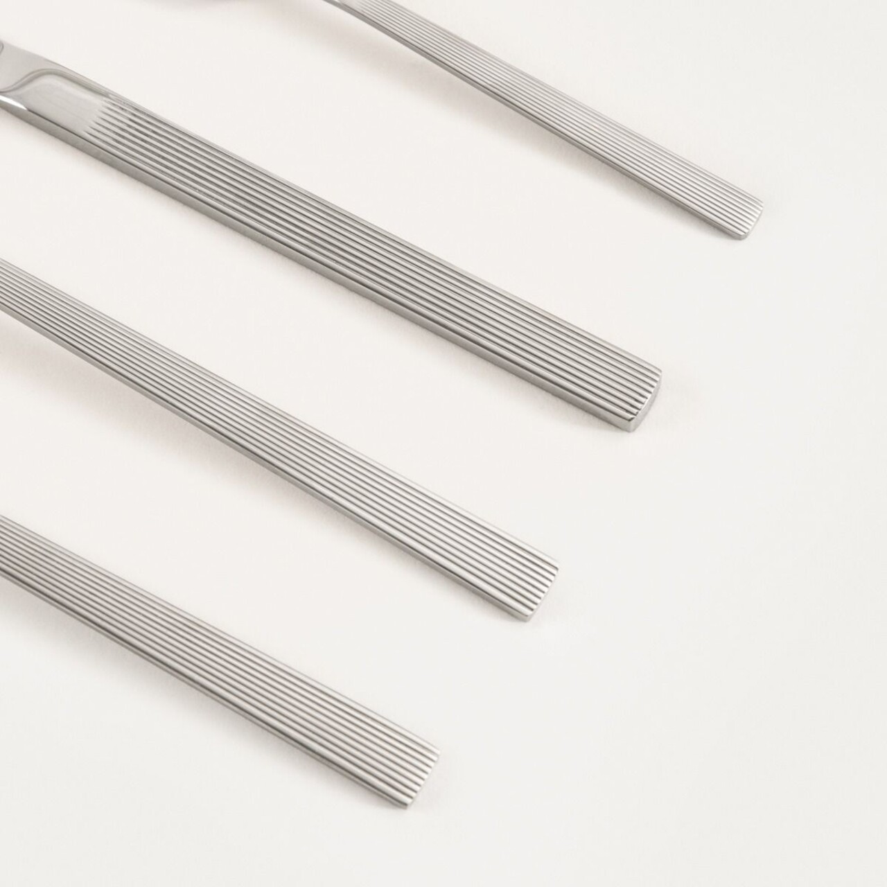 Suprafata canelata confera setului un aspect distinctiv si face ca tacamurile sa se distinga de modelele traditionale. Forma ergonomica a fost conceputa pentru a face fiecare masa confortabila si placuta.