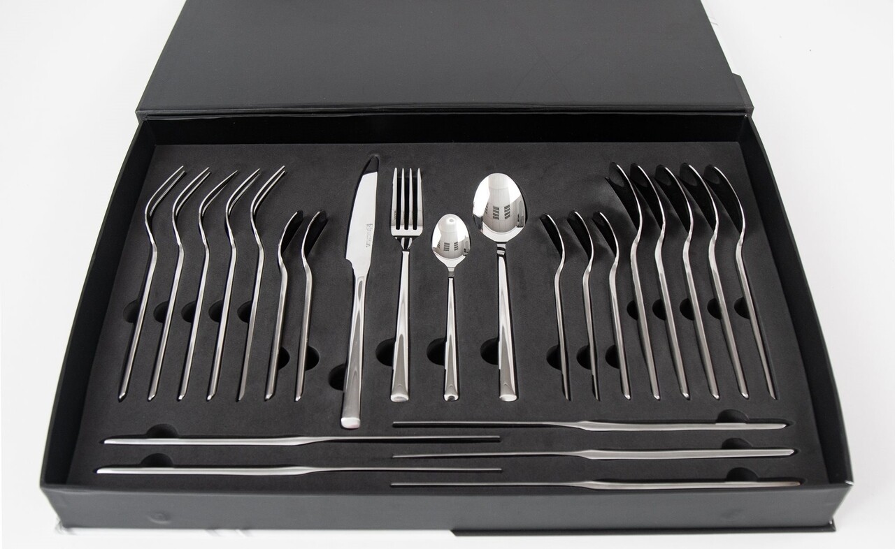 Rezistent la acizi si coroziune, setul de tacamuri poate reprezenta un cadou perfect, ce va completa cu eleganta mesele dumneavoastra.