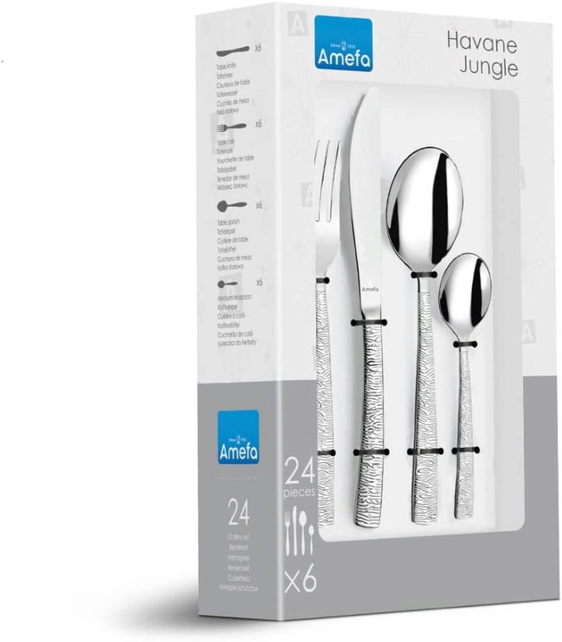 Set tacamuri 24 piese Amefa, Havane Jungle, inox 18/0, argintiu