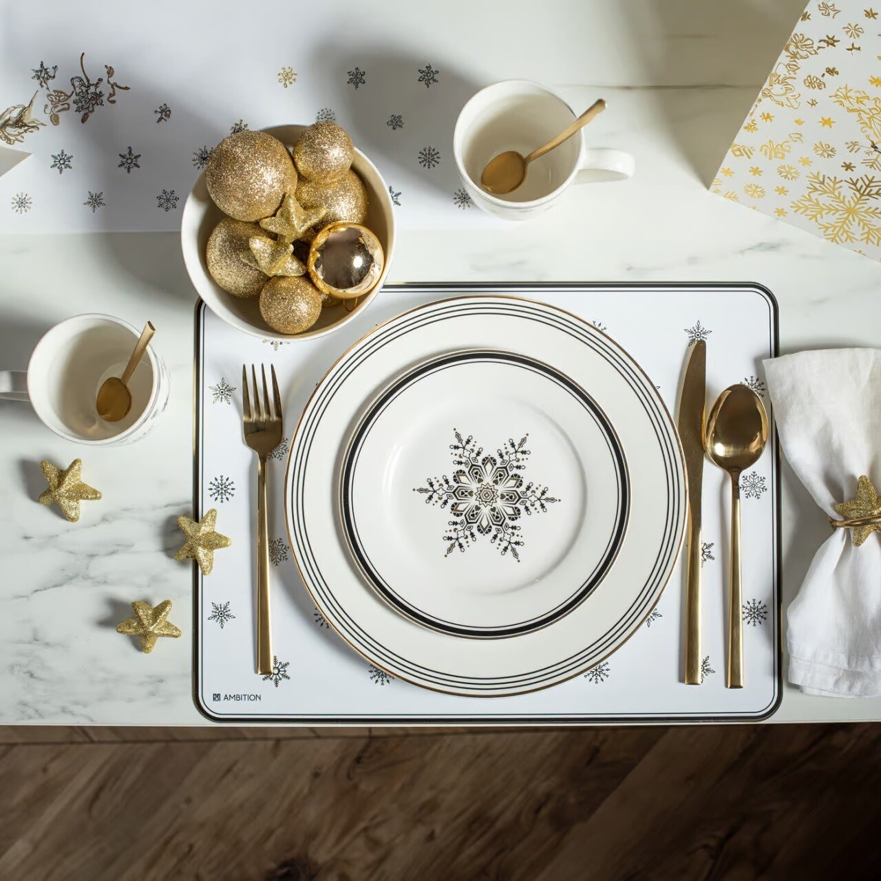 Setul de tacamuri Ambition Como are un stil minimalist si este format din 24 piese ambalate intr-o cutie de cadou colorata si sunt o idee grozava de cadou. Manerul tacamurilor se armonizeaza perfect cu vesela mentinuta intr-un stil modern si clasic. Tacamurile sunt fabricate din otel inoxidabil de inalta calitate, sunt lustruite manual, au finisaj in oglinda si pot fi spalate la masina de spalat vase.