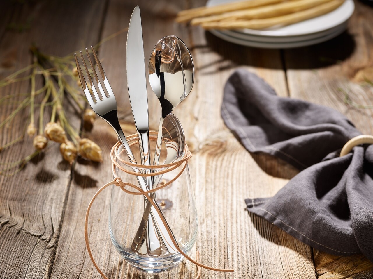 New Fresh Basic este o colectie ce se potriveste in orice context, de la unul festiv, de sarbatoare la unul obisnuit, de zi cu zi. Tacamurile completeaza frumos intregul aranjament al mesei, aducand un plus de stil si rafinament.