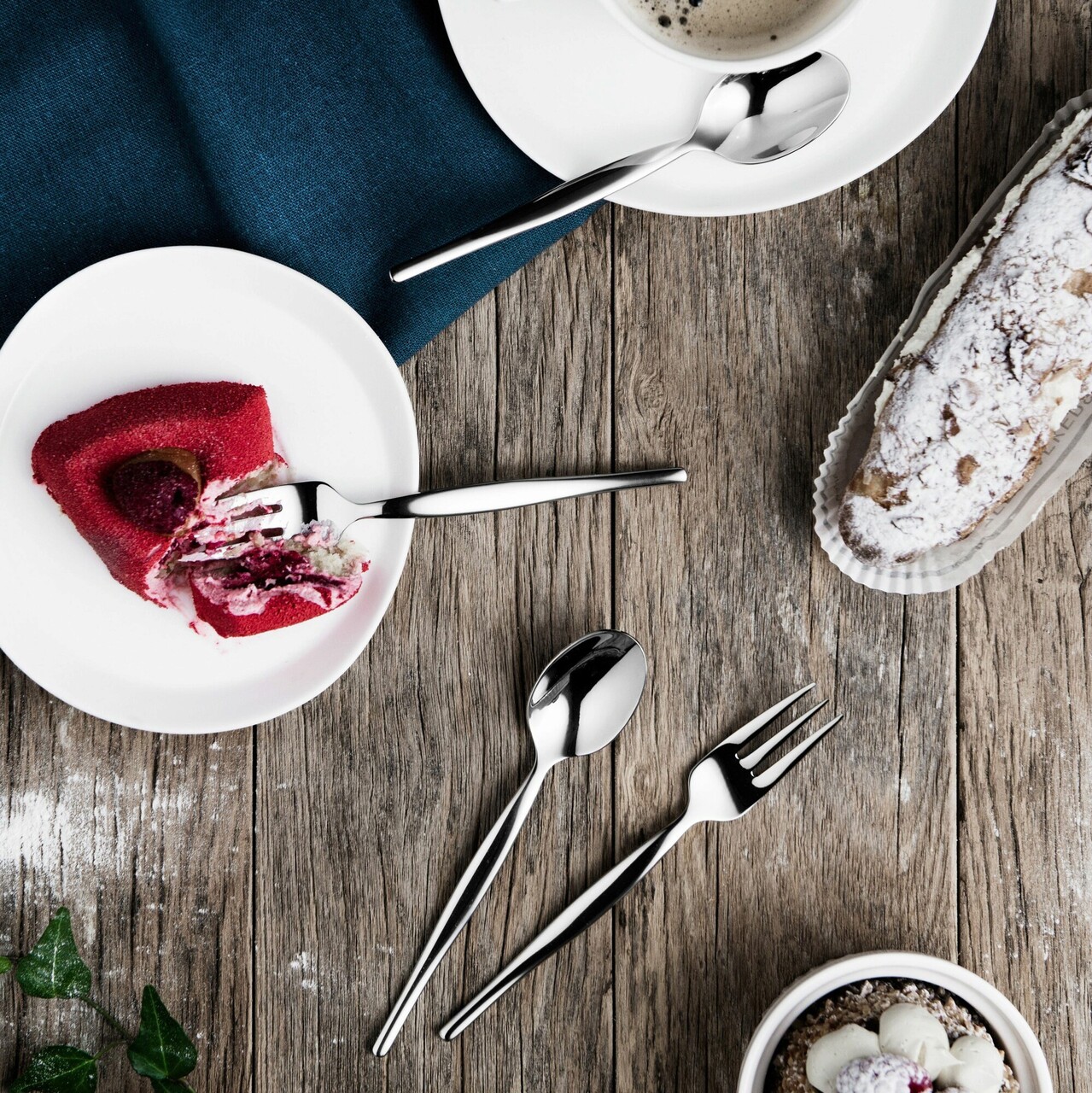 Fie ca planuiti o cina gourmet sau vreti doar sa adaugati un strop de delicatete meselor zilnice in familie, tacamurile Finesse sunt completarea perfecta a mesei. Tacamurile prezinta curbe fluide, usoare care creeaza o silueta eleganta. Marginea si gulerul fin al manerelor, combinate cu corpul usor rotunjit, se asigura ca tacamurile elegante sunt minunate in mana si vor fi o incantare la masa in orice moment.