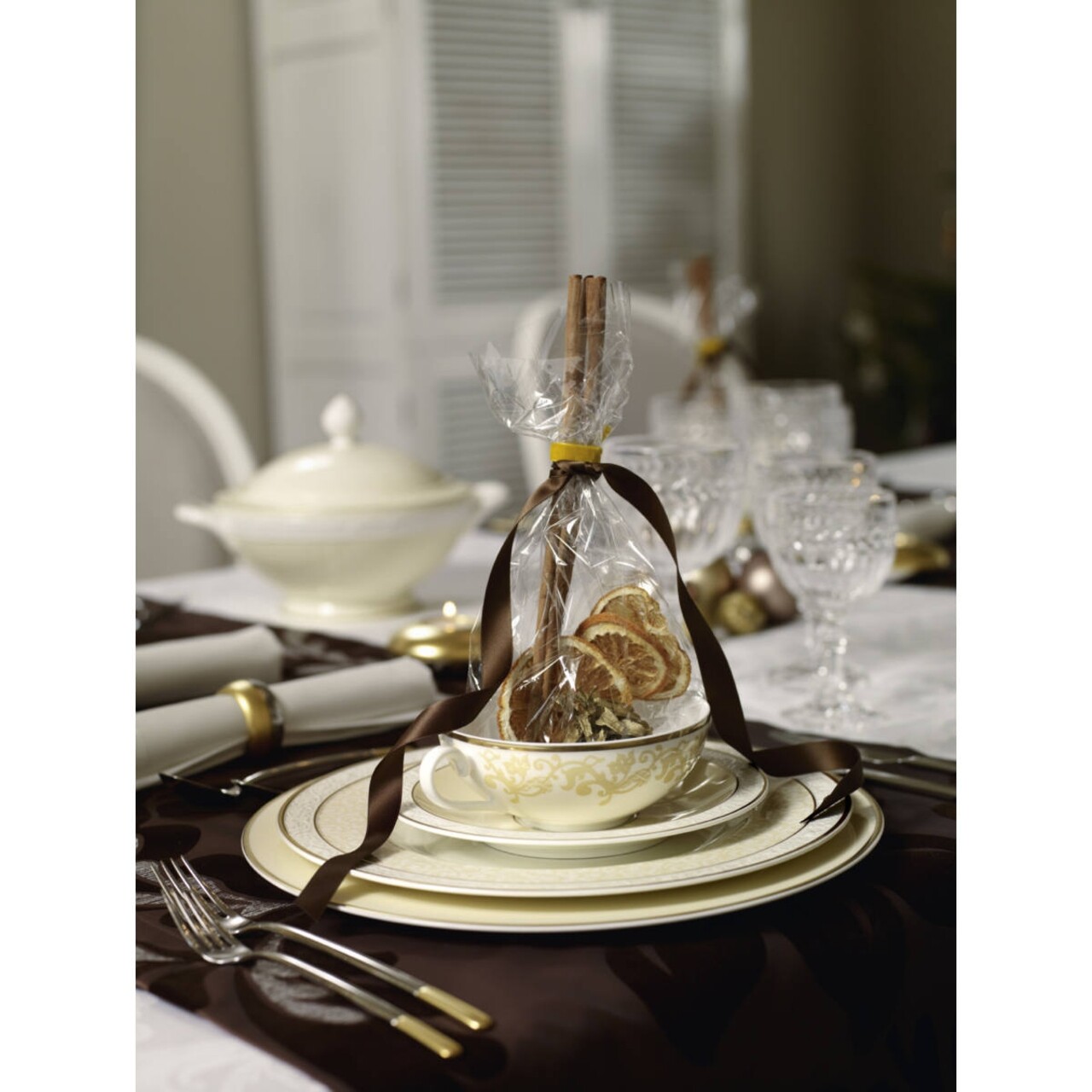 Ce ai spune despre o colectie de tacamuri placate cu aur? Suna...pretios, nu-i asa? Villeroy & Boch a indraznit sa adauge creatiilor sale detalii aurite, ce completeaza armonios siluetele delicate ale tacamurilor ce le poarta semnatura. Suprafata otelului inoxidabil de 18/10 este lustruita, mai putin capetele manerelor care au un aspect matuit, catifelat, oferind un contrast extrem de placut si original.
