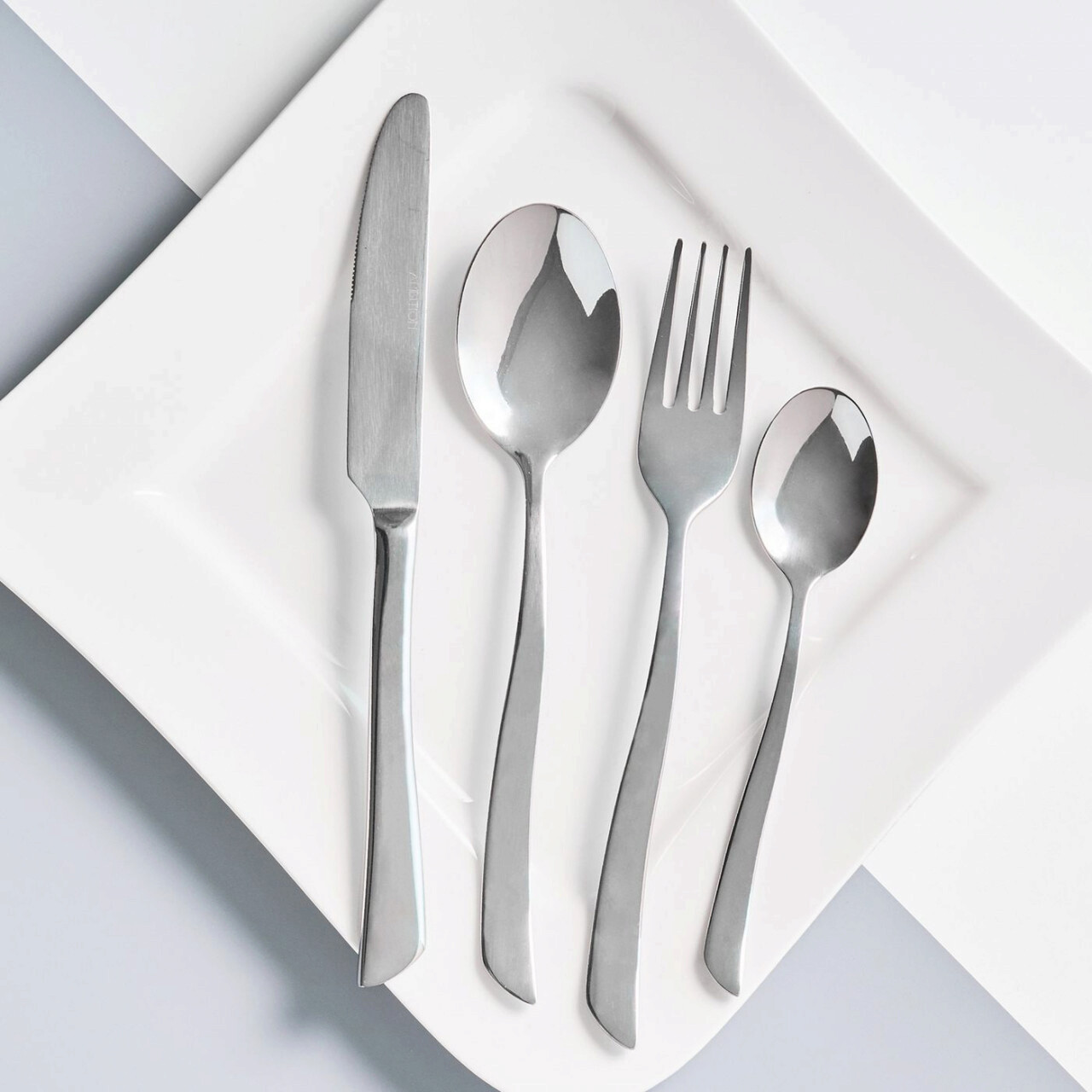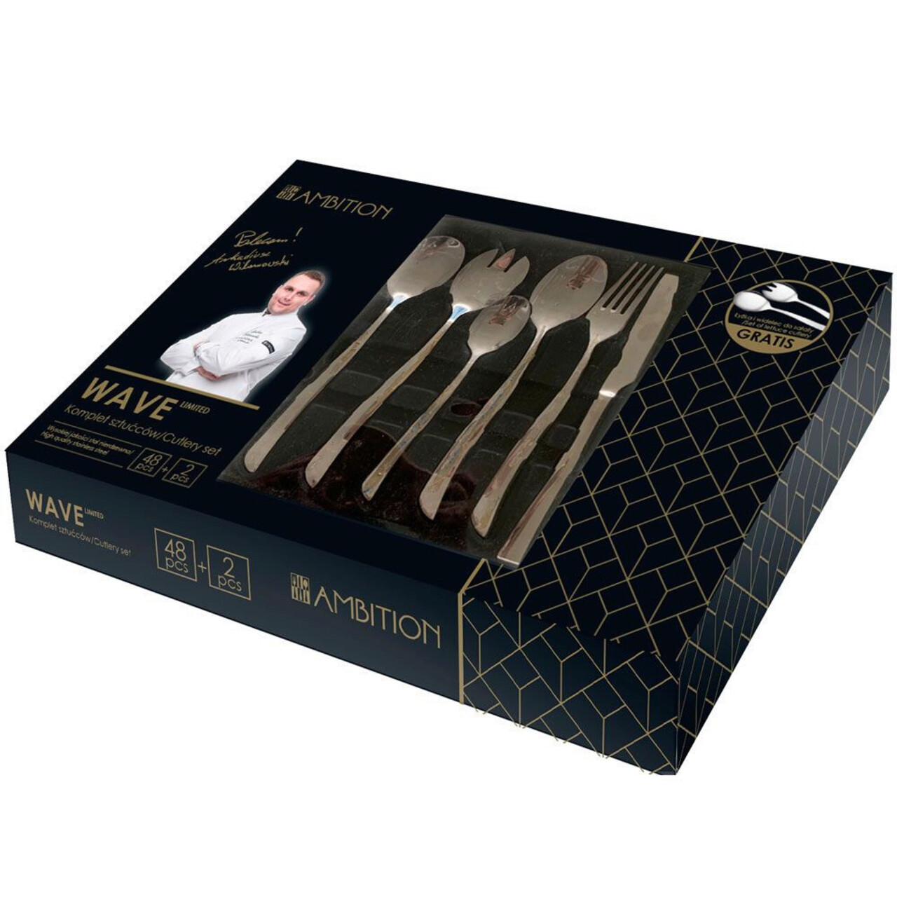 Set tacamuri 50 piese Wave, Ambition, 12 persoane, ambalate in cutie cadou, otel, argintiu