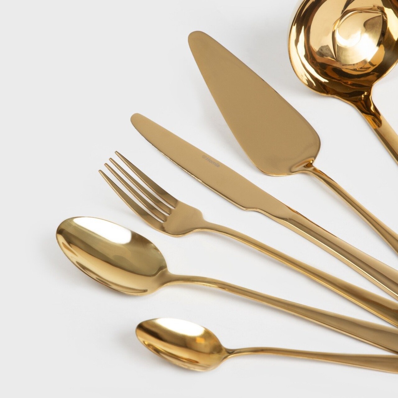Imbogatiti-va mesele de zi cu zi cu setul ABELE care combina stilul clasic si modern. Compus din 18 piese, inclusiv o spatula pentru patiserie si o lingura pentru supa, acest set ofera tot ce aveti nevoie pentru a servi preparate si deserturi rafinate. Datorita finisajului sau atent, va adauga o nota speciala oricarei mese.