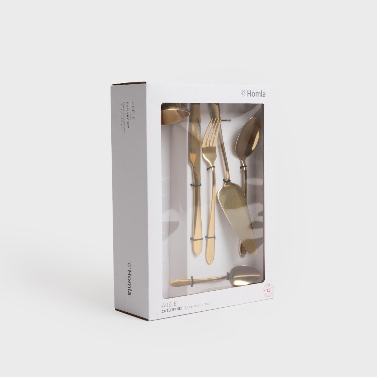 Set tacamuri pentru 4 persoane, 18 piese, Abele, Homla, inox, auriu