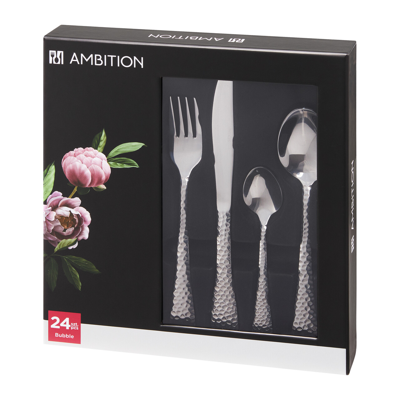 Set tacamuri pentru 6 persoane, 24 piese Bubble, Ambition, inox, argintiu