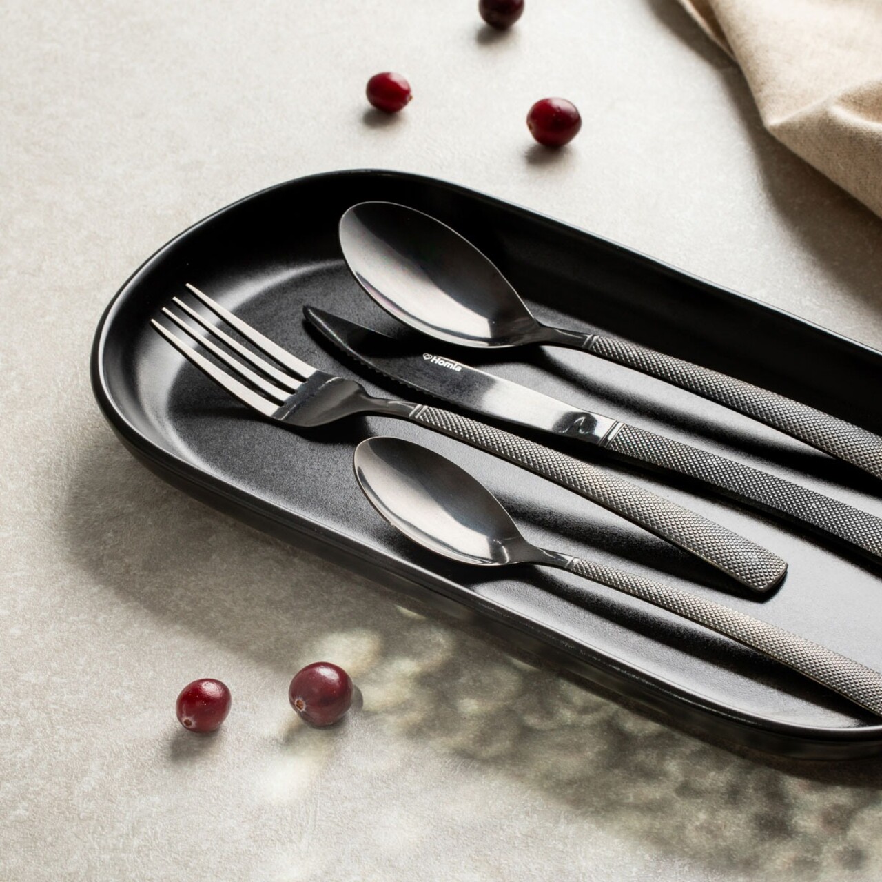 Set tacamuri pentru 6 persoane Streamline, Homla, 24 piese, inox, negru