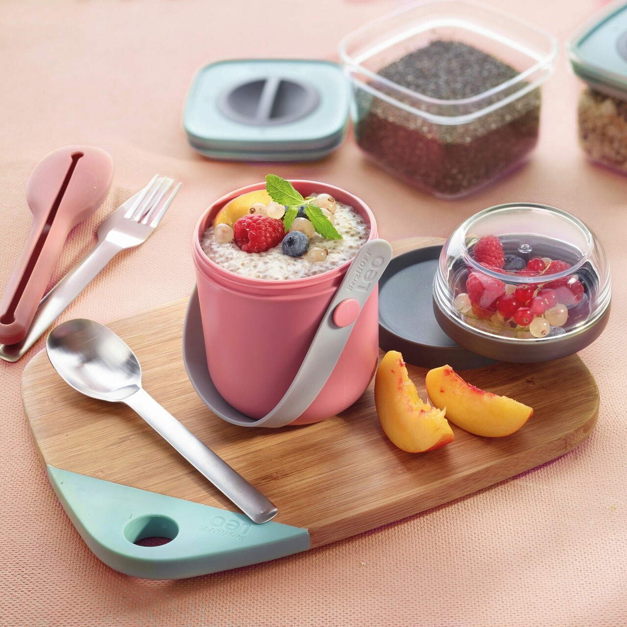 Set tacamuri pentru calatorie 4 piese BergHOFF, Leo, inox/silicon, roz