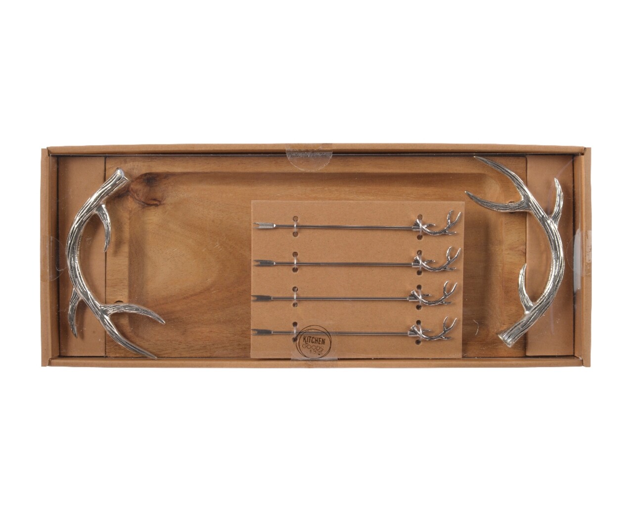 Set tava si 4 furculite pentru gustari, Decoris, argintiu