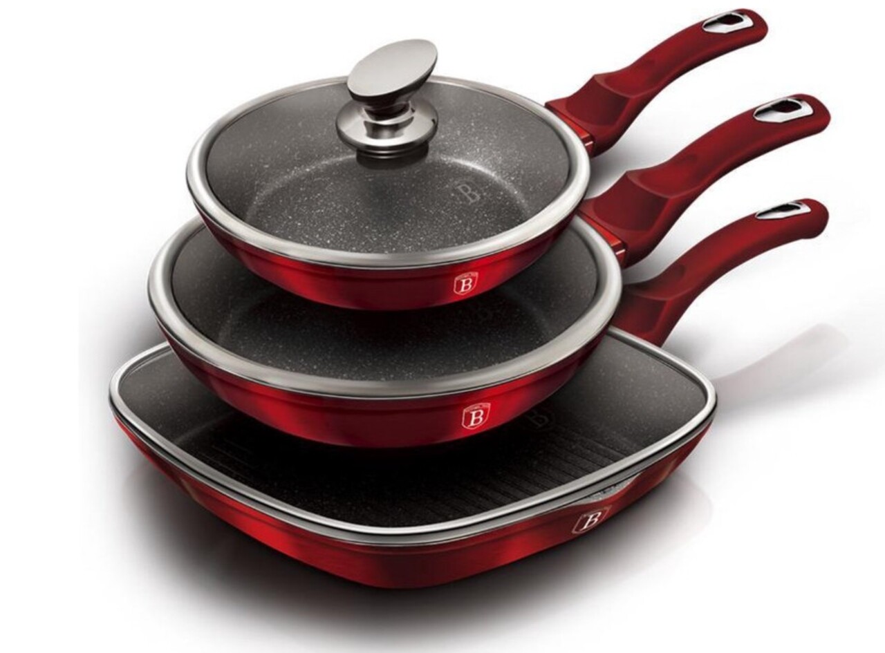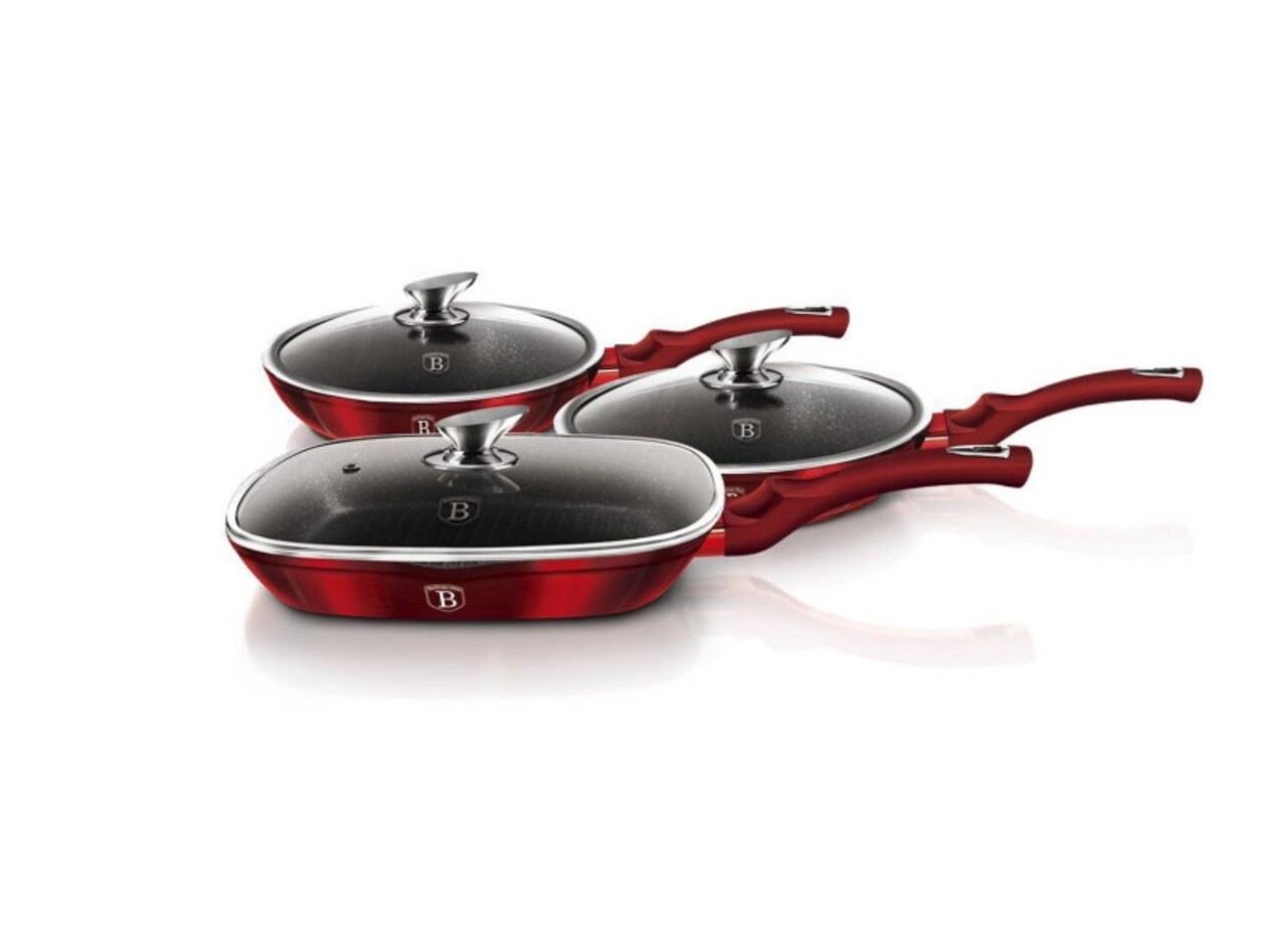 Set tigai 6 piese, Berlinger, Metallic Line Burgundy Edition, aluminiu turnat/marmura/sticla termorezistenta