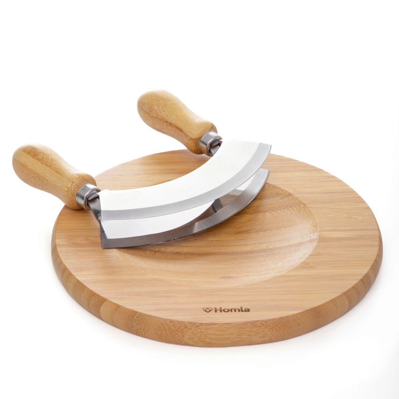 Set tocator si cutit Bambou, Homla, 20x1.6 cm, lemn, natur/argintiu