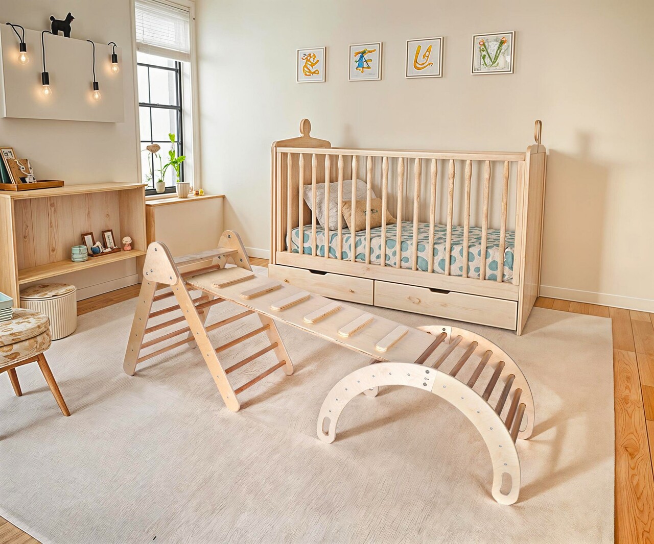 Set triunghi de catarare Pikler, Rosewood, BLTYZ-AKTV0149, Placaj, Stejar