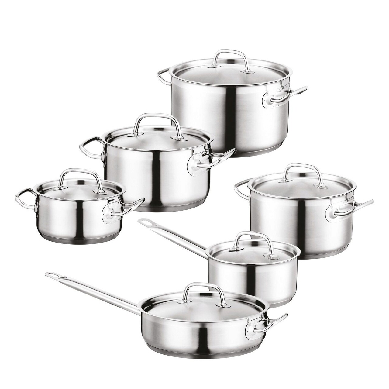 Cadoul perfect pentru un bucatar incepator sau scuza ideala pentru a inlocui vechile oale si tigai, oricum ati privi-o, acest set de vase de gatit din 12 piese este o completare excelenta pentru orice bucatarie. Cu acest set, sunteti sigur ca veti avea elementele de baza acoperite. Fiecare articol este echipat cu o baza care asigura un transfer uniform de caldura pentru o gatire eficienta din punct de vedere energetic si un capac asortat din otel inoxidabil care va ajuta sa pastrati caldura, umiditatea si aromele.