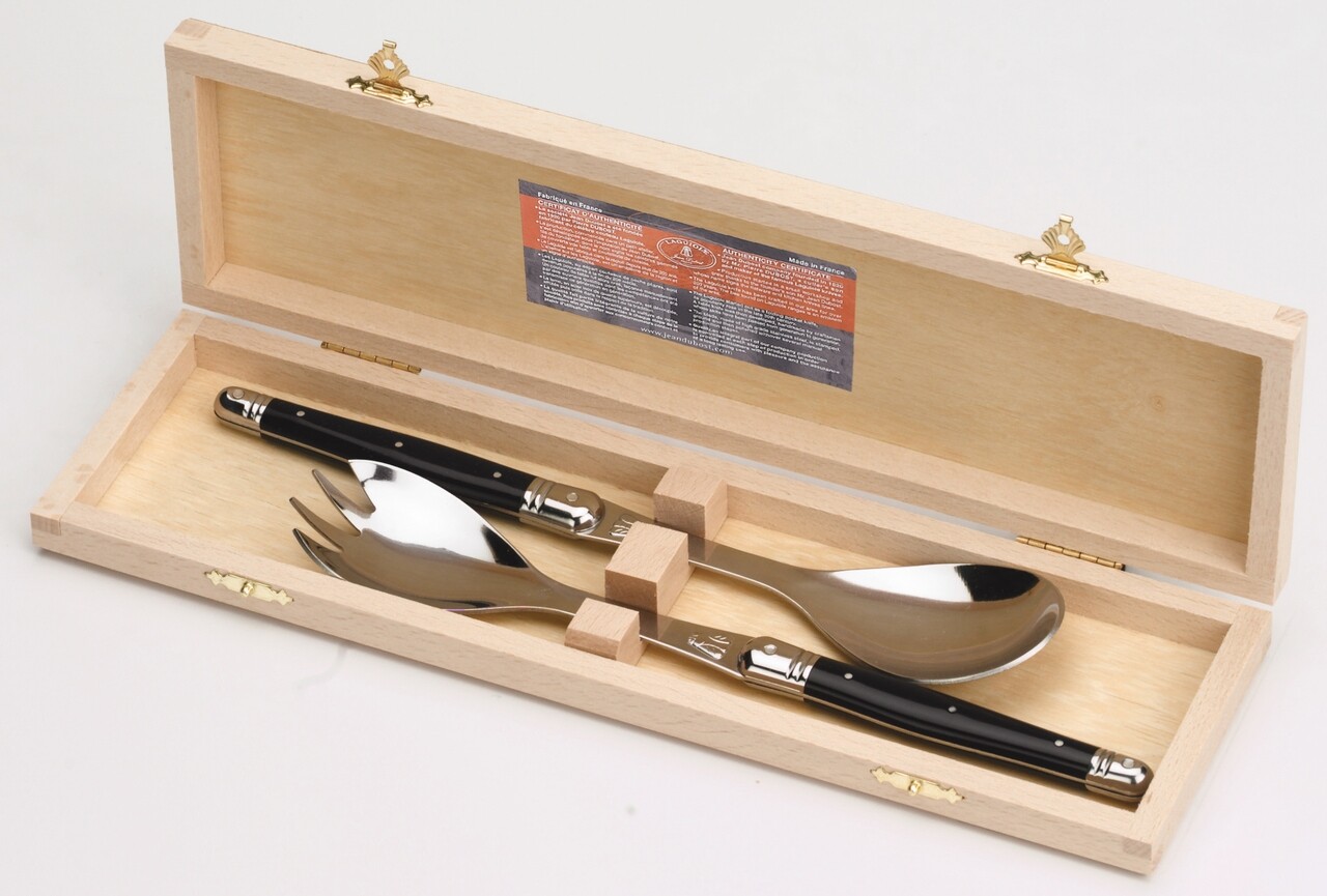 Set2 ustensile pentru salata cu suport Laguiole, Jean Dubost, inox, negru