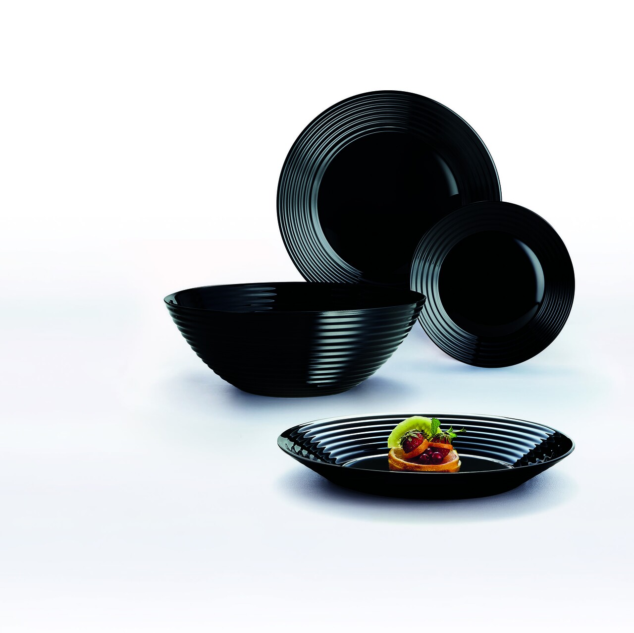 Seviciu de masa 19 piese, Luminarc, Harena, opal, negru