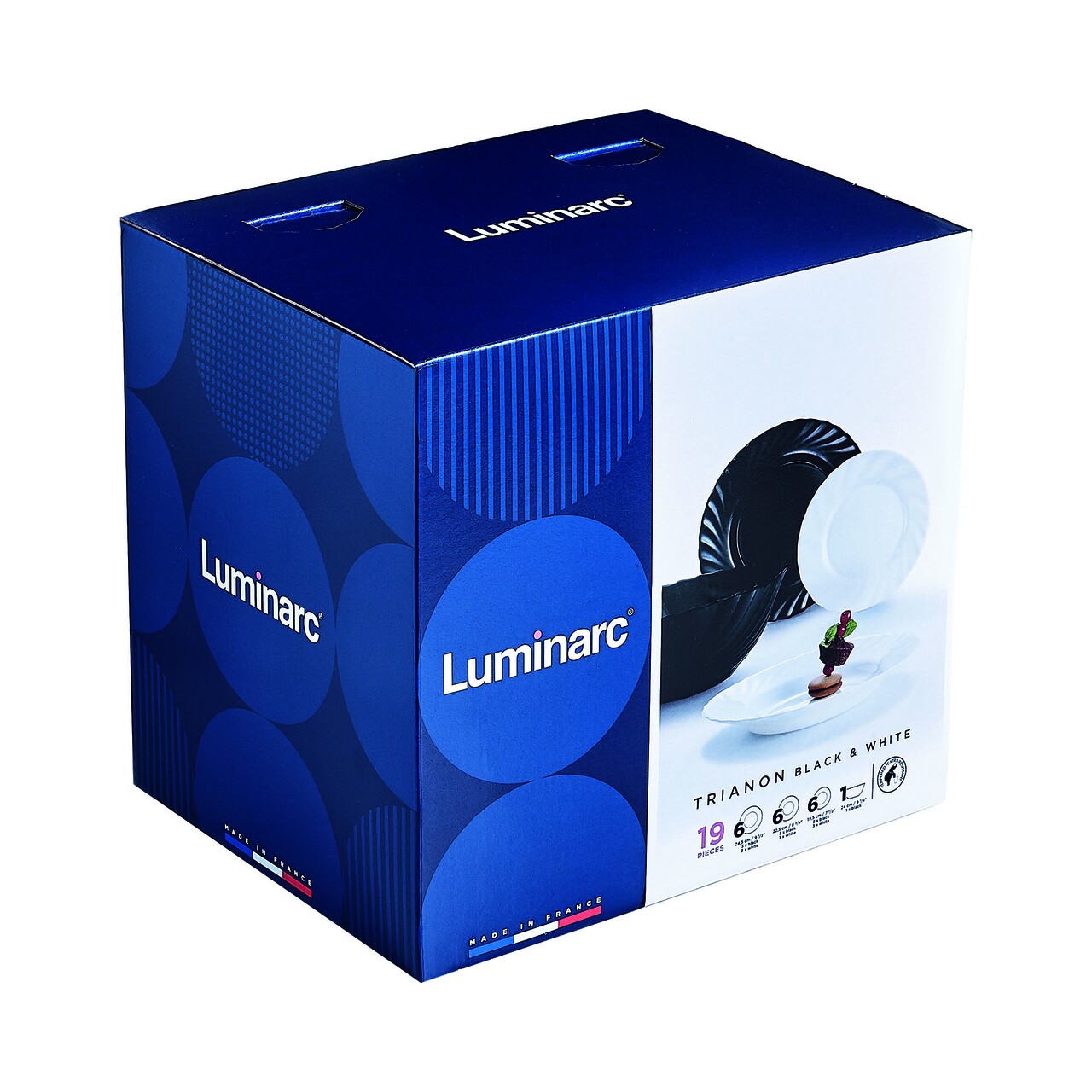 Seviciu de masa 19 piese, Luminarc, Trianon, opal, alb/negru