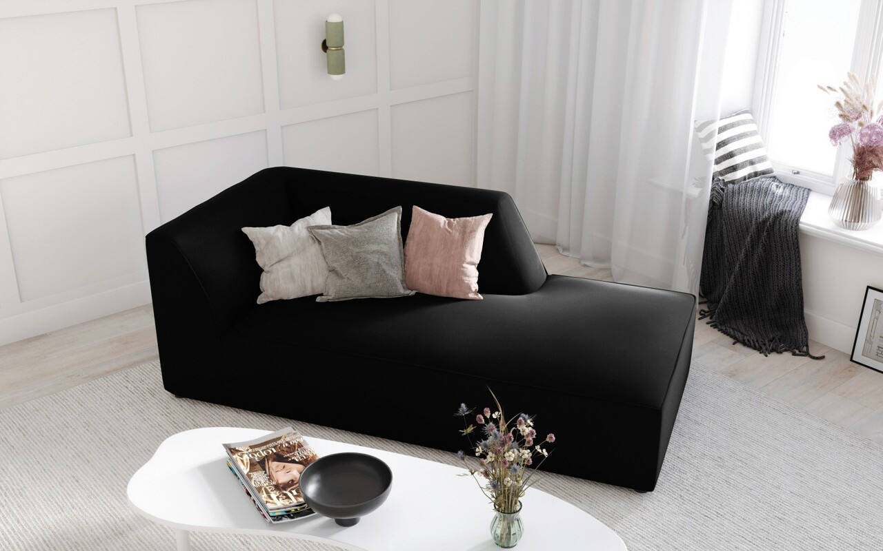 Sezlong living dreapta 1 loc, Ruby, Micadoni Home, BL, 180x93x69 cm, catifea, negru