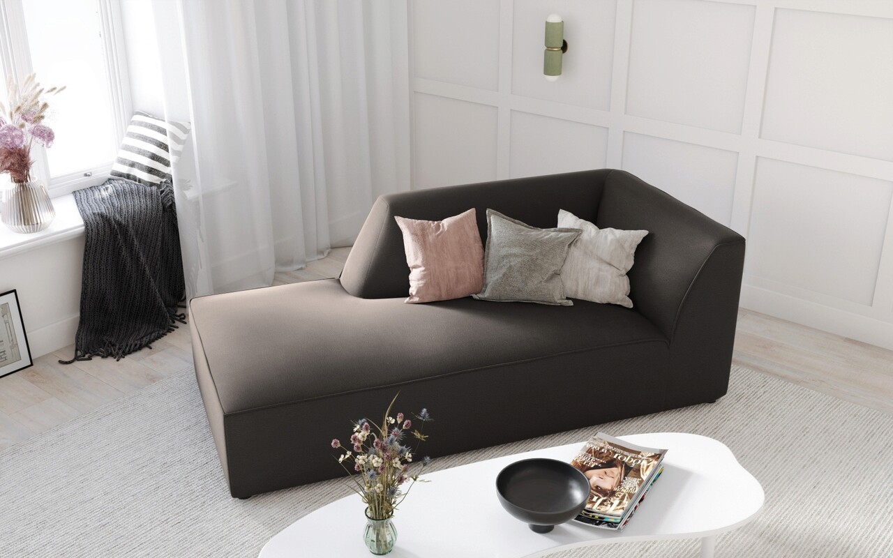Sezlong living stanga 1 loc, Ruby, Micadoni Home, BL, 180x93x69 cm, catifea, gri inchis