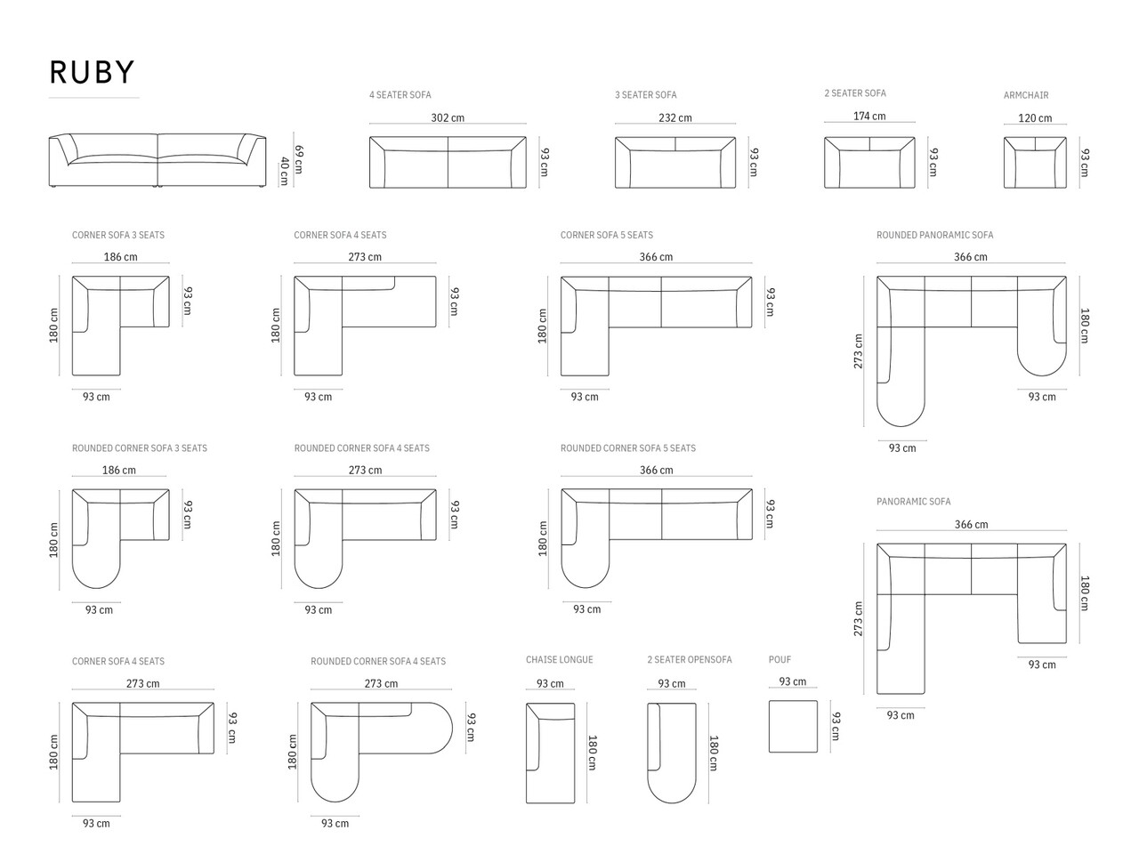 Sezlong living stanga 1 loc, Ruby, Micadoni Home, BL, 180x93x69 cm, velur, gri deschis