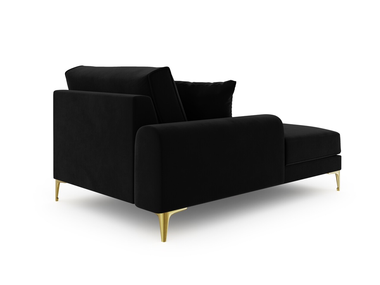 Sezlong living stanga, Madara, Mazzini Sofas, gold legs, 102x182x90 cm, catifea, negru