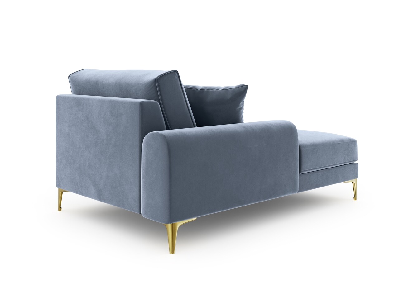 Sezlong living stanga, Madara, Mazzini Sofas, gold legs, 102x182x90 cm, catifea, albastru deschis