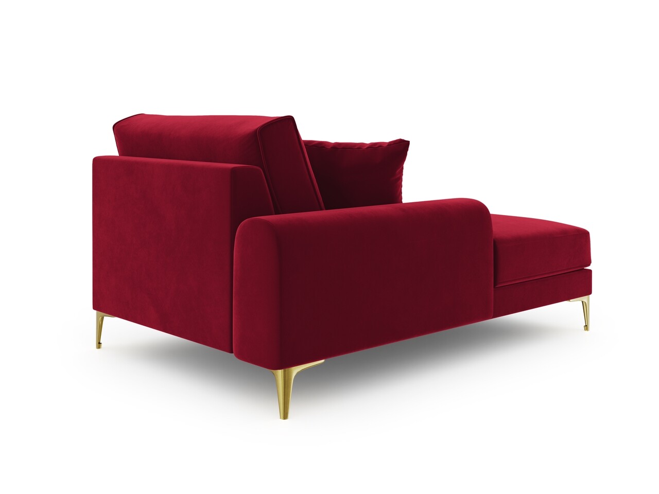Sezlong living stanga, Madara, Mazzini Sofas, gold legs, 102x182x90 cm, catifea, rosu vin