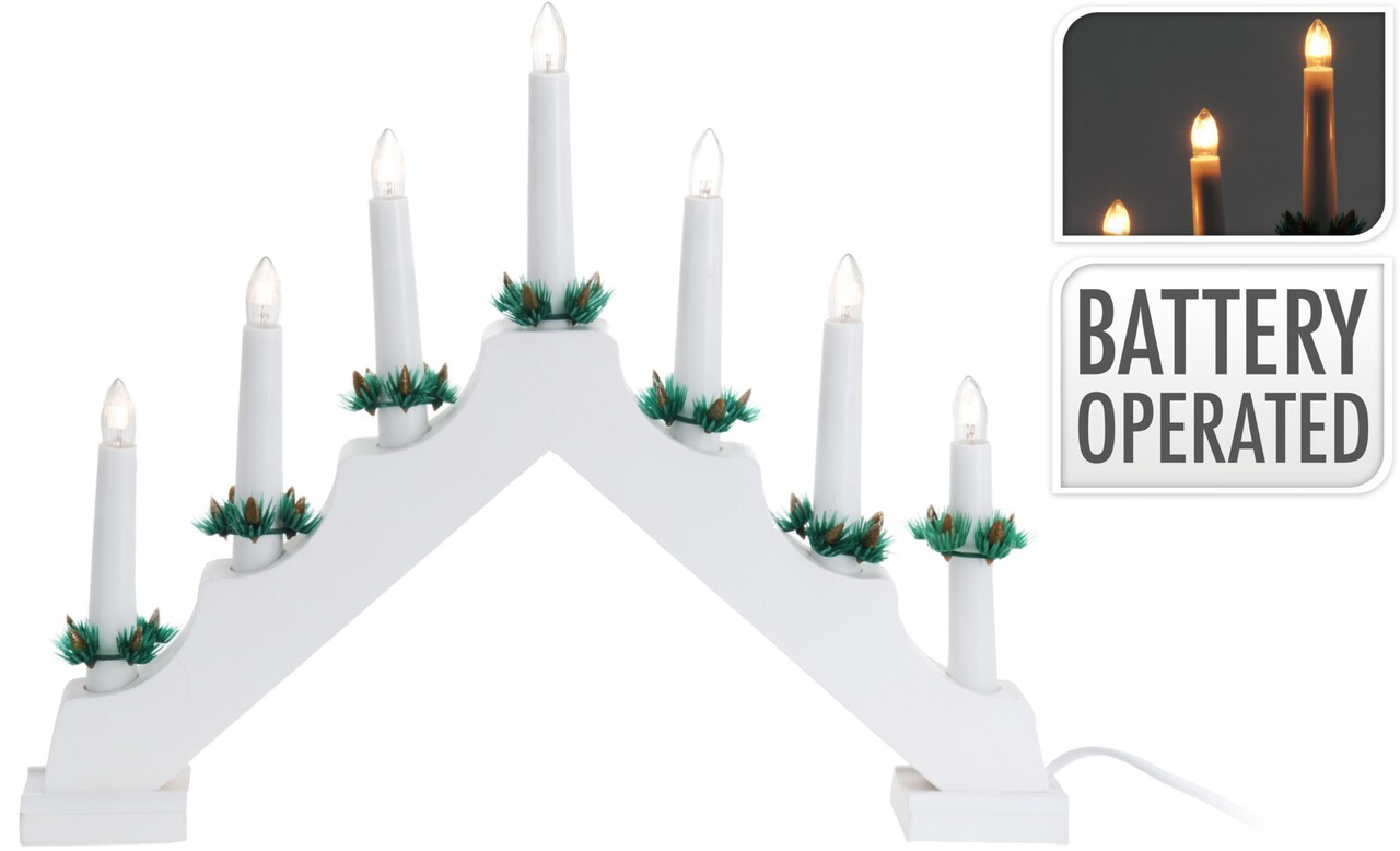 Sfesnic cu lumanari LED, 39.5x5x31 cm, 7 LED-uri, lemn, alb