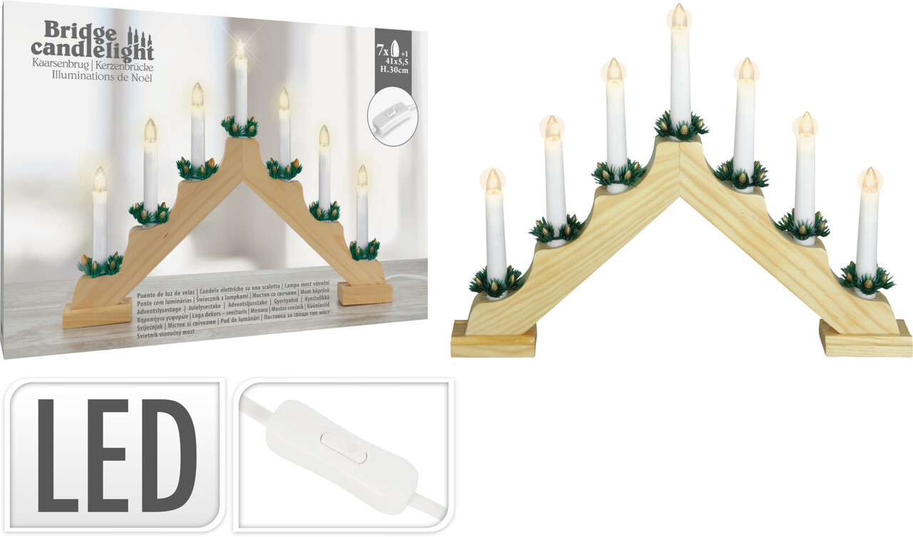 Sfesnic cu lumanari LED, lemn, natural