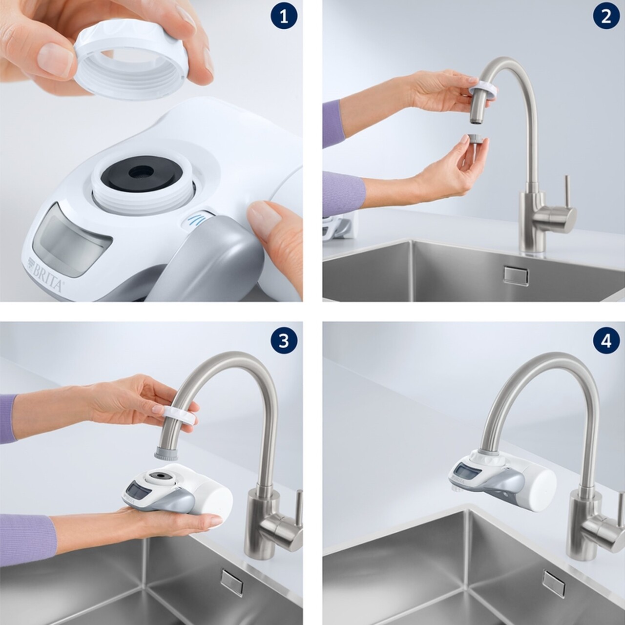Sistemul de filtrare este dotat cu ecran LCD ce afiseaza capacitatea ramasa de apa filtrata si o maneta pentru a diferentia apa filtrata de cea nefiltrata. Aparatul de filtrare functioneaza cu o baterie CR2032, inclusa in pachet.