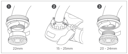 | Tipuri de robinete compatibile(5 adaptoare incluse) | Robinete necompatibile(Mai mici de 15 mm, Rotunde, Extensibile, Patrate) |