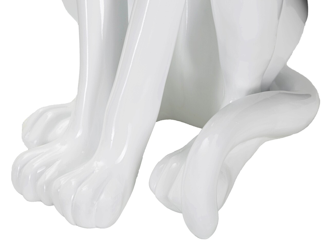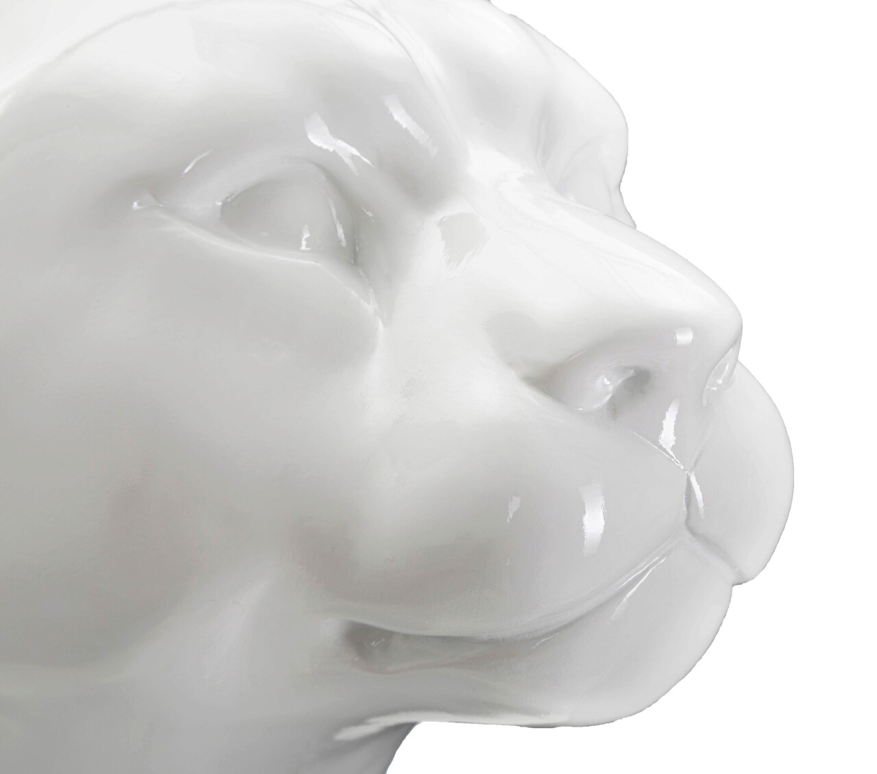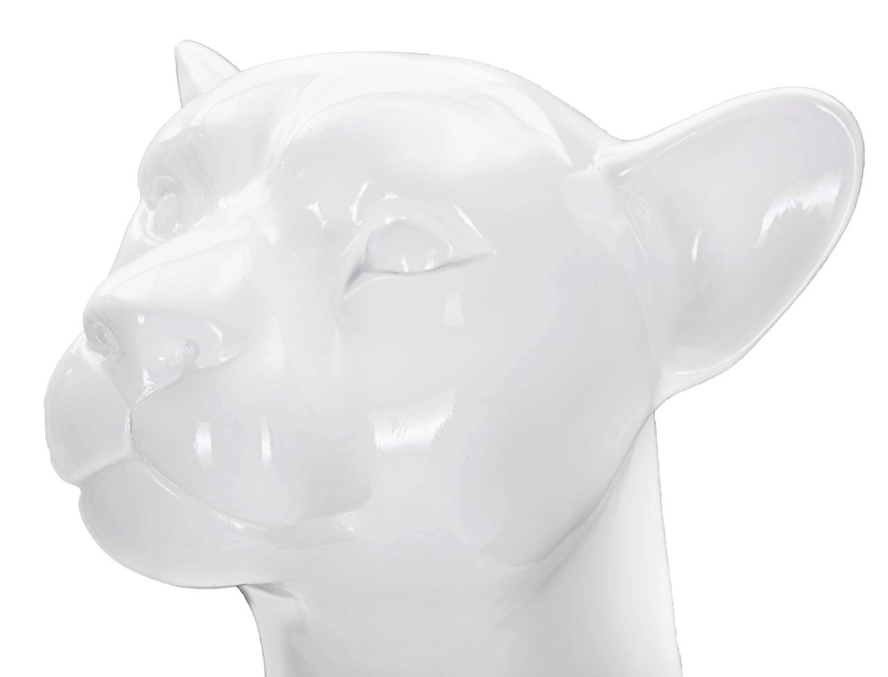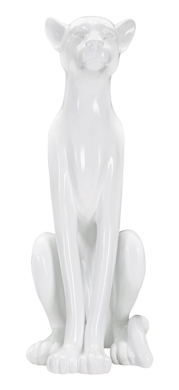 Statueta alba in forma de leopard asezat, cu linii moi si sinuoase.