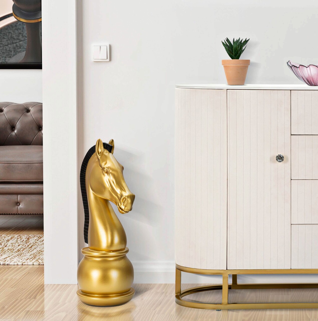 Statueta decorativa / Piesa de sah Cal, Gold Horse, Mauro Ferretti, Ø18.5 x 50 cm, polirasina, auriu/negru