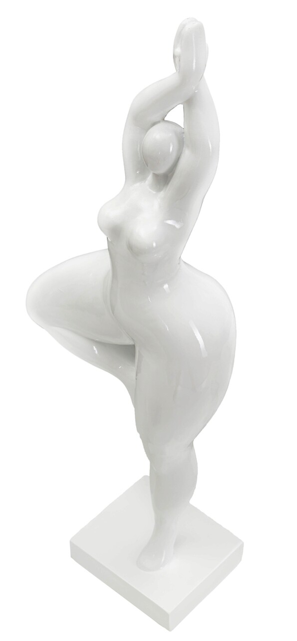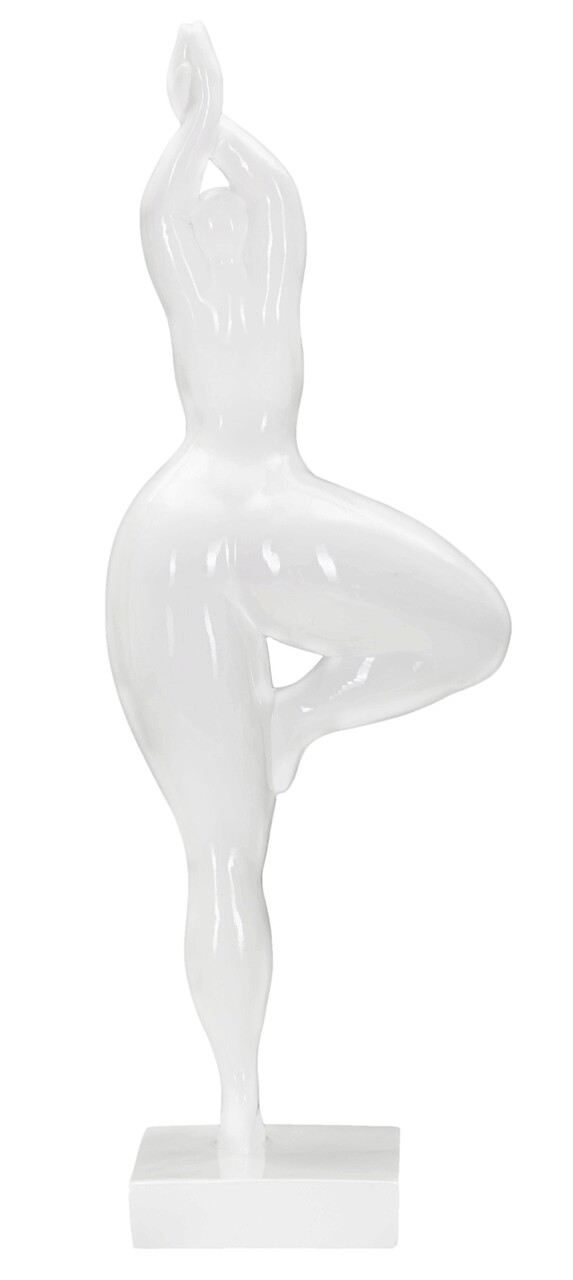 Statueta alba eleganta reprezentand o femeie in pozitie de yoga.