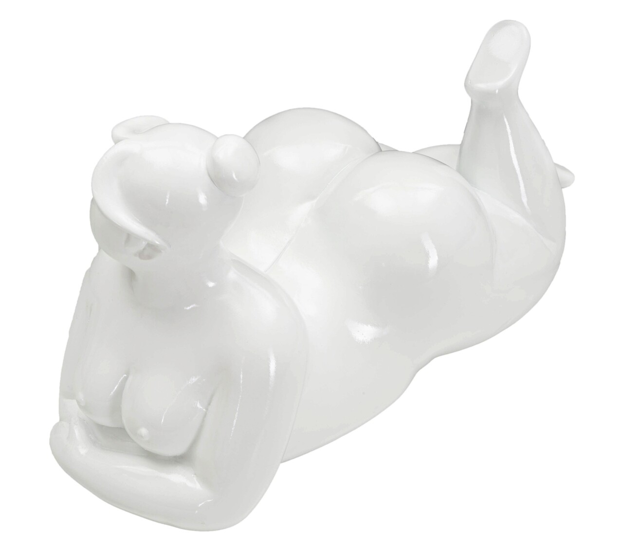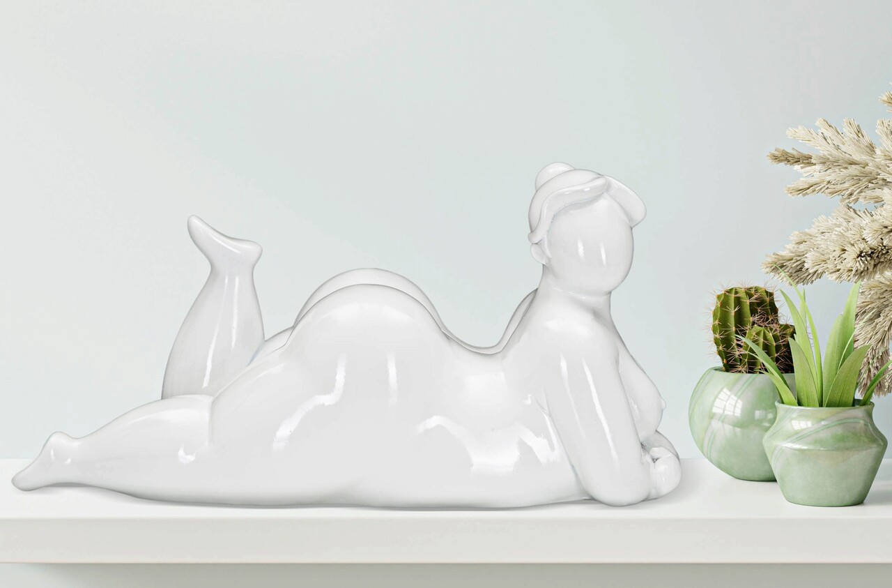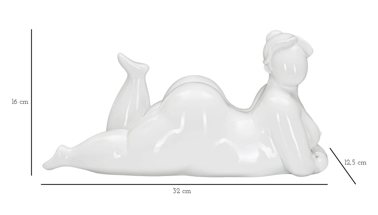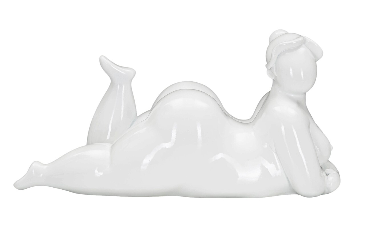 Statueta alba eleganta reprezentand o femeie intinsa.
