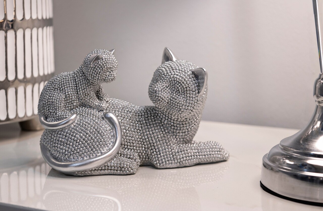 Statueta / figurina decorativa Cat Sparky With Kid, Mauro Ferretti, 19x9x13 cm, polirasina, argintiu