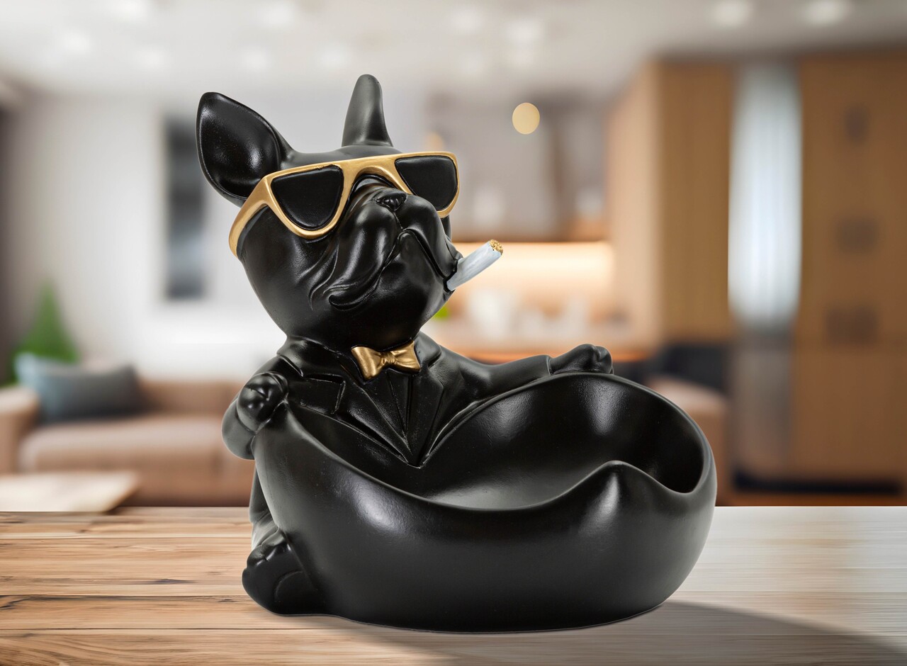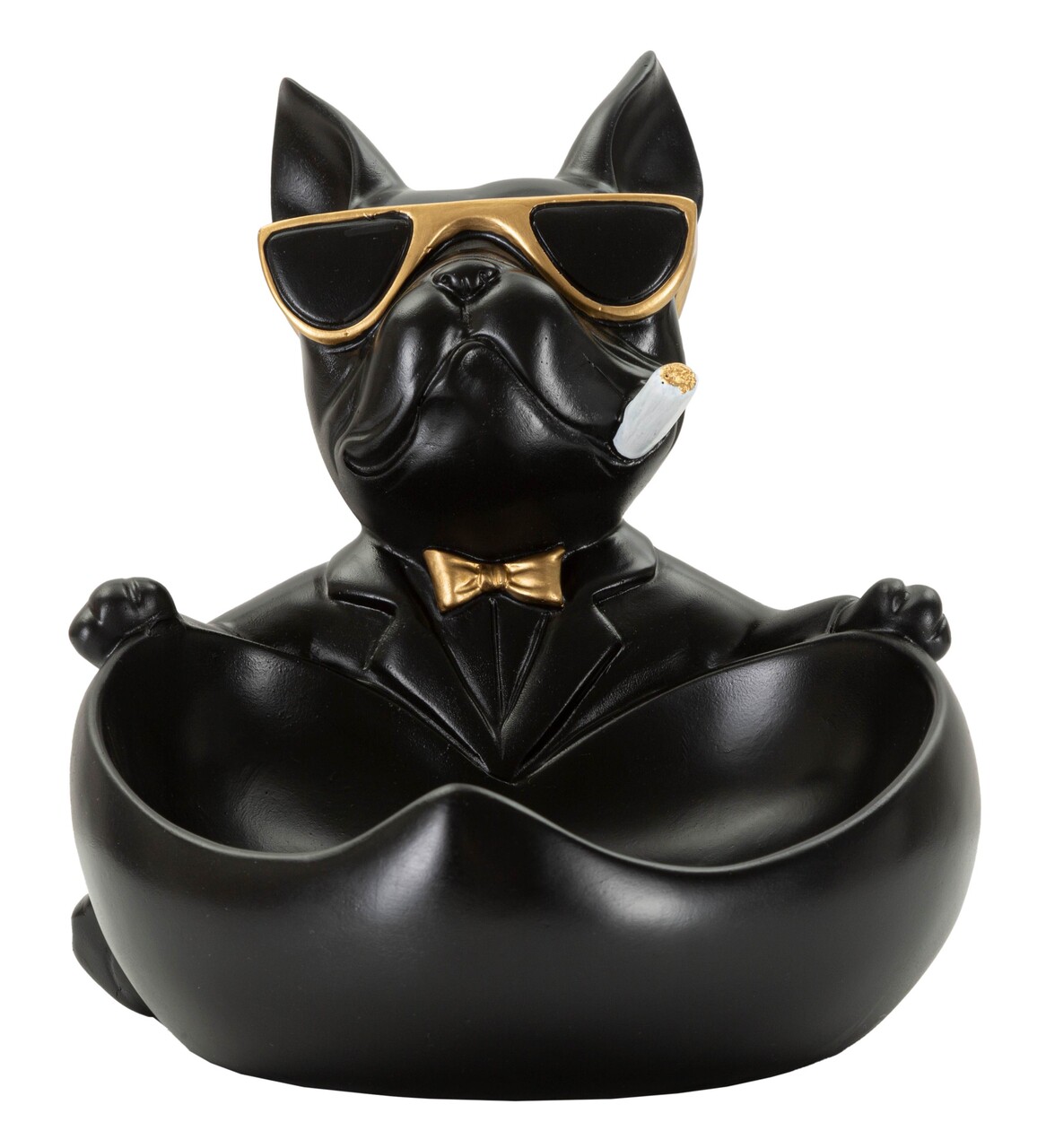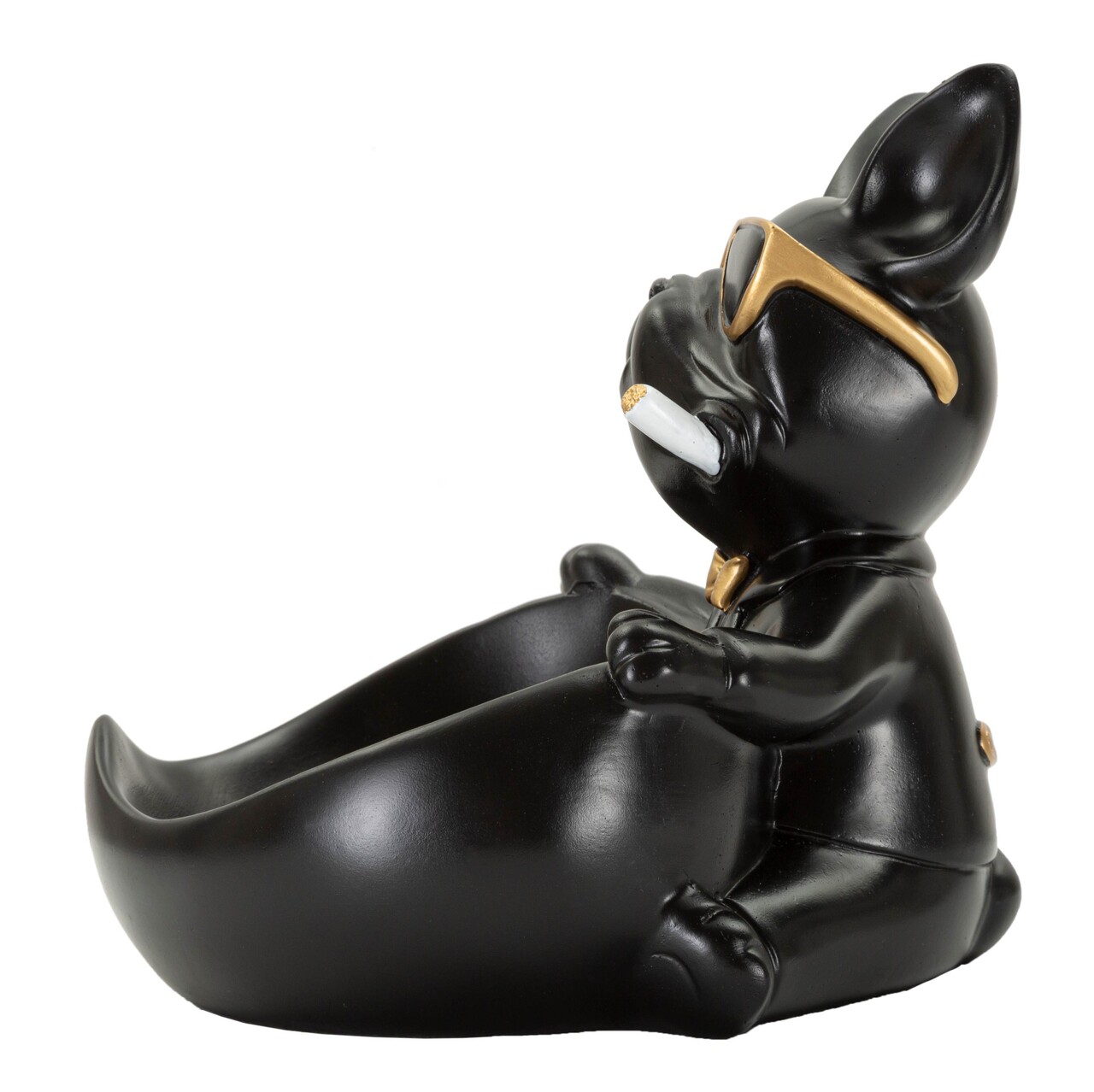 Statueta / figurina decorativa cu tava Dog Ball, Mauro Ferretti, 18.5x20.5x20 cm, polirasina, negru/auriu