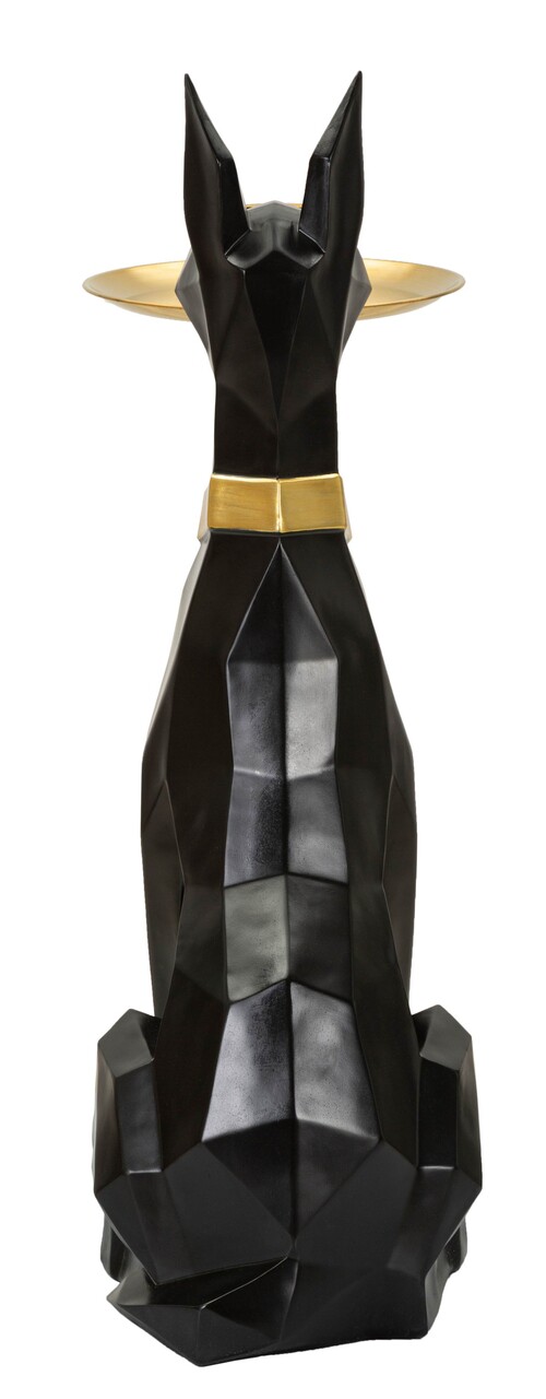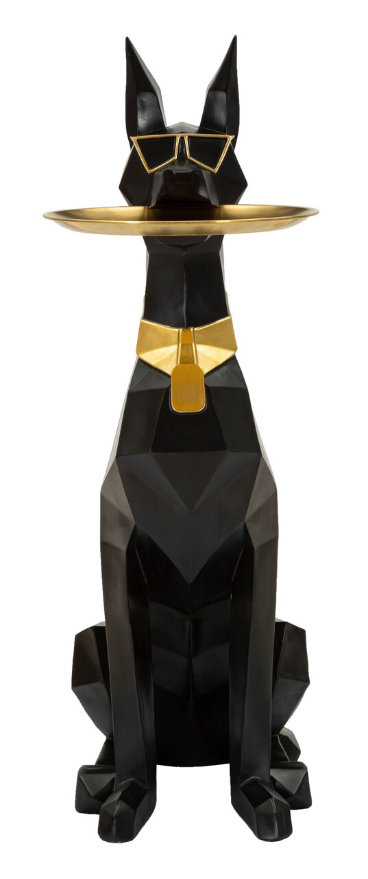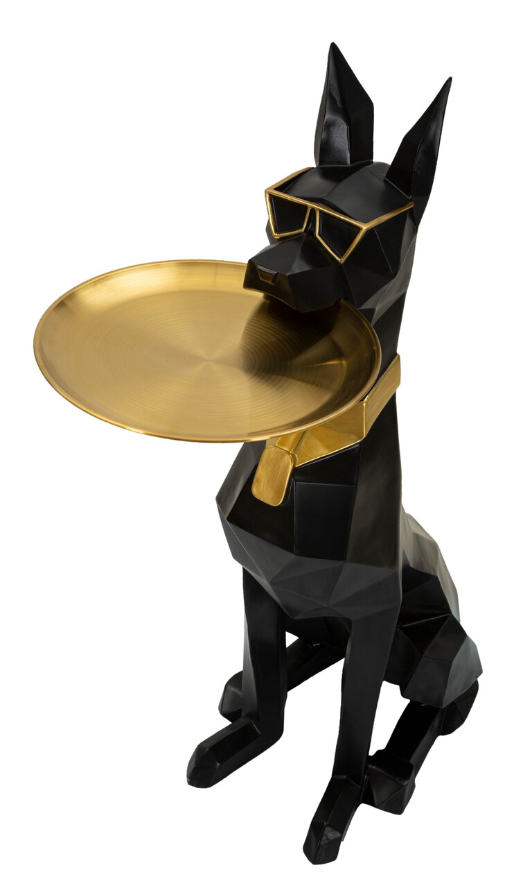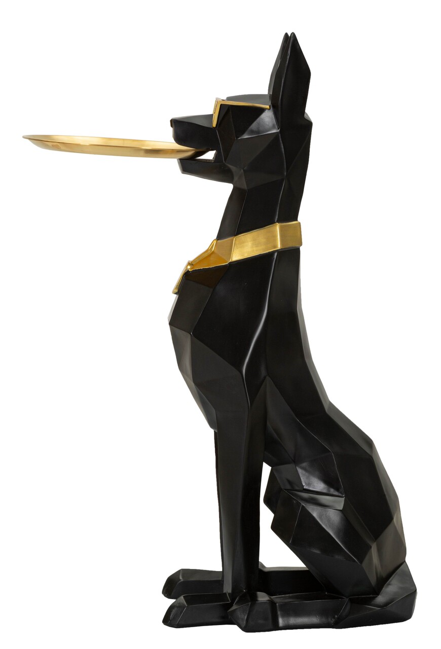 Statueta / figurina decorativa cu tava Dog Ory, Mauro Ferretti, 30x64x91 cm, polirasina/metal, negru/auriu