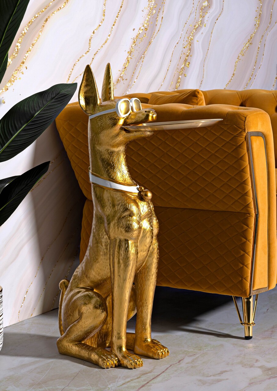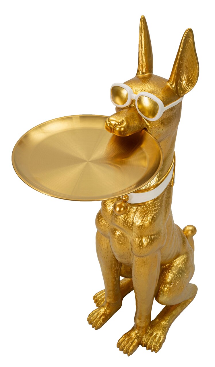 Statueta / figurina decorativa cu tava Dog Pit, Mauro Ferretti, 30x64x91 cm, polirasina/metal, auriu