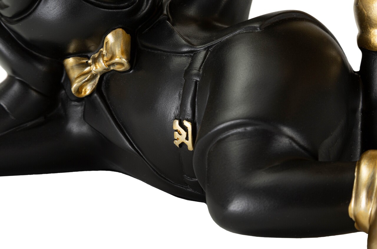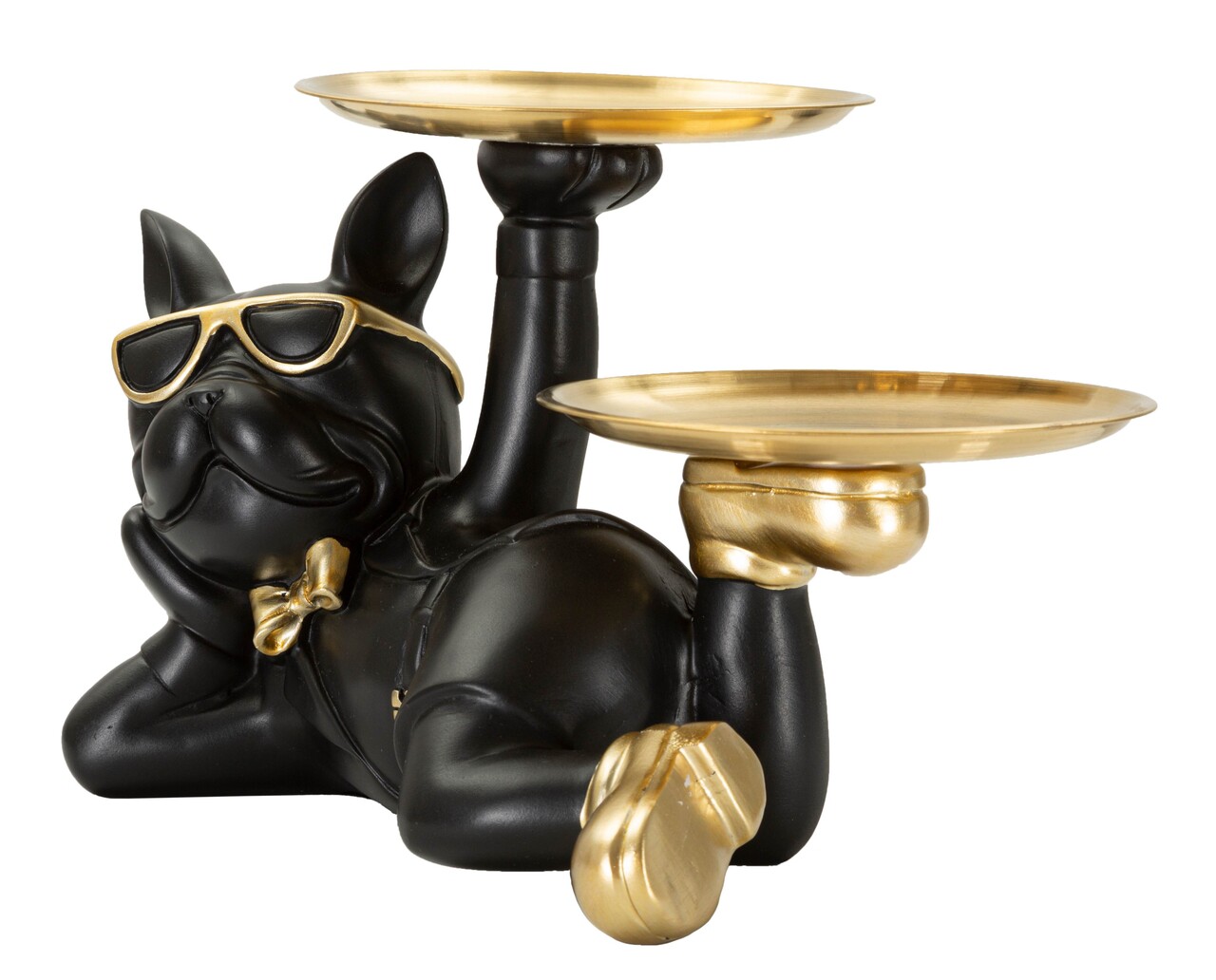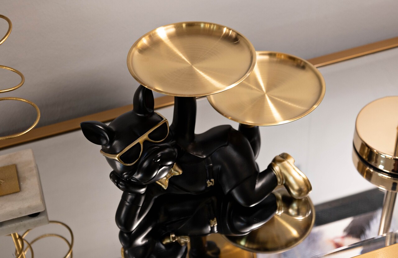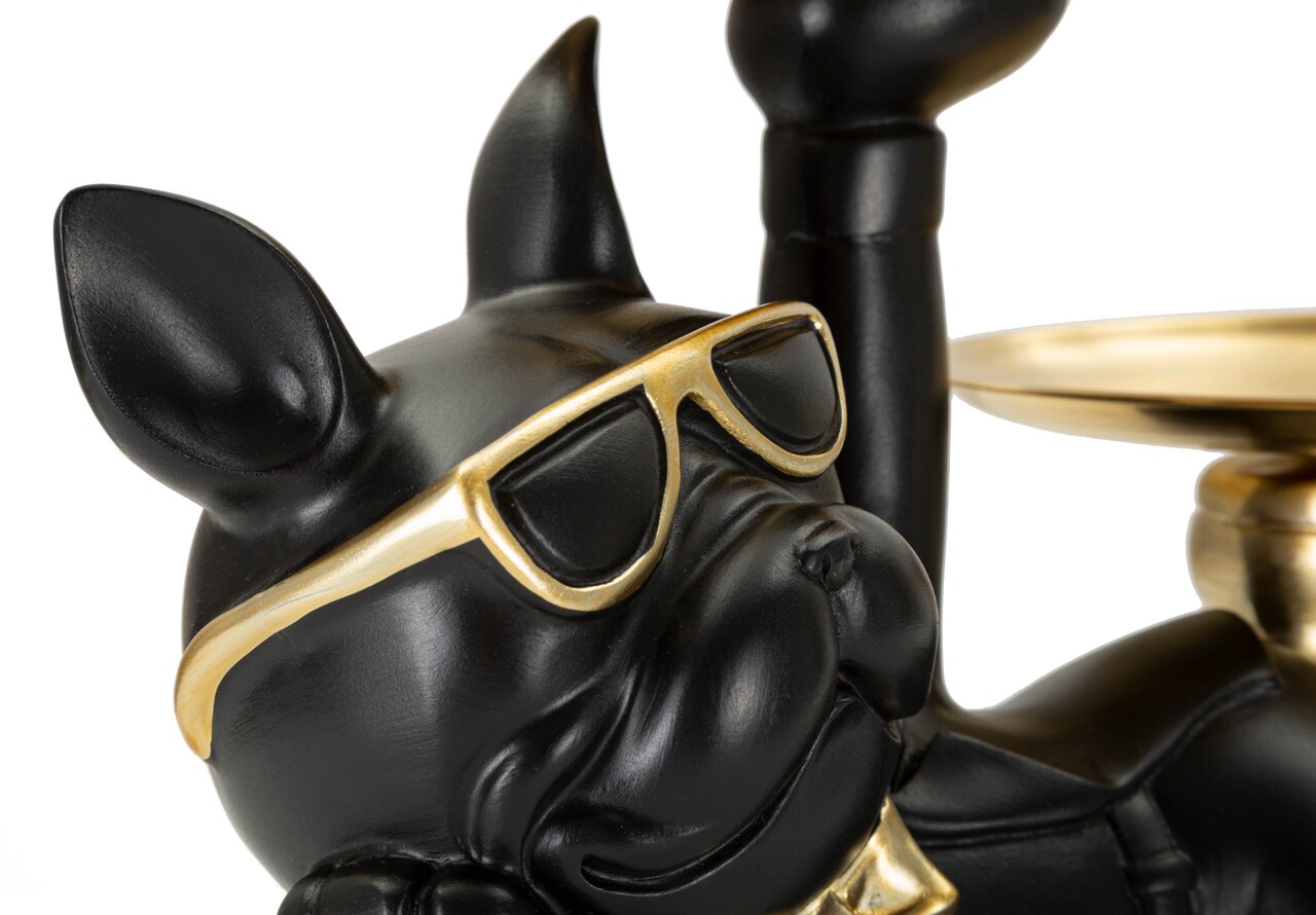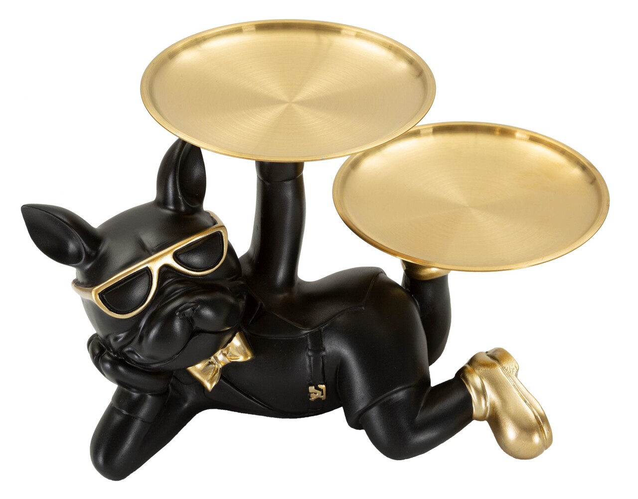 Statueta / figurina decorativa cu tava Dog Rover , Mauro Ferretti, 27x17x18.5 cm, polirasina/metal, negru/auriu