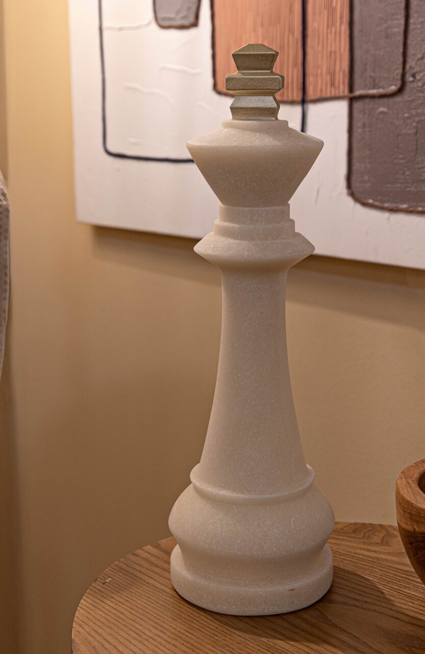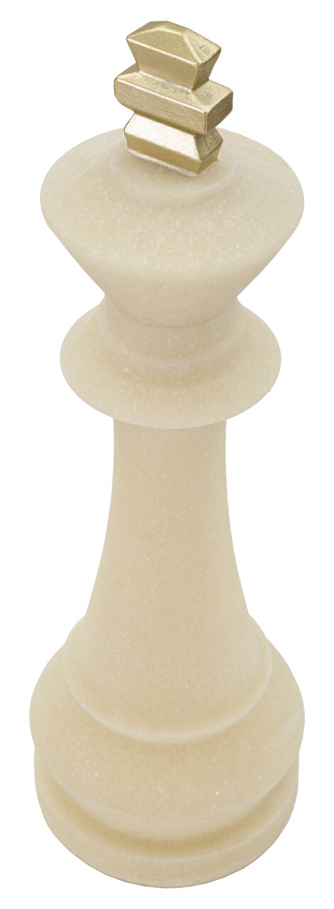 Statueta / figurina decorativa King Quarzy, Mauro Ferretti, 13x13x41 cm, polirasina, alb/auriu