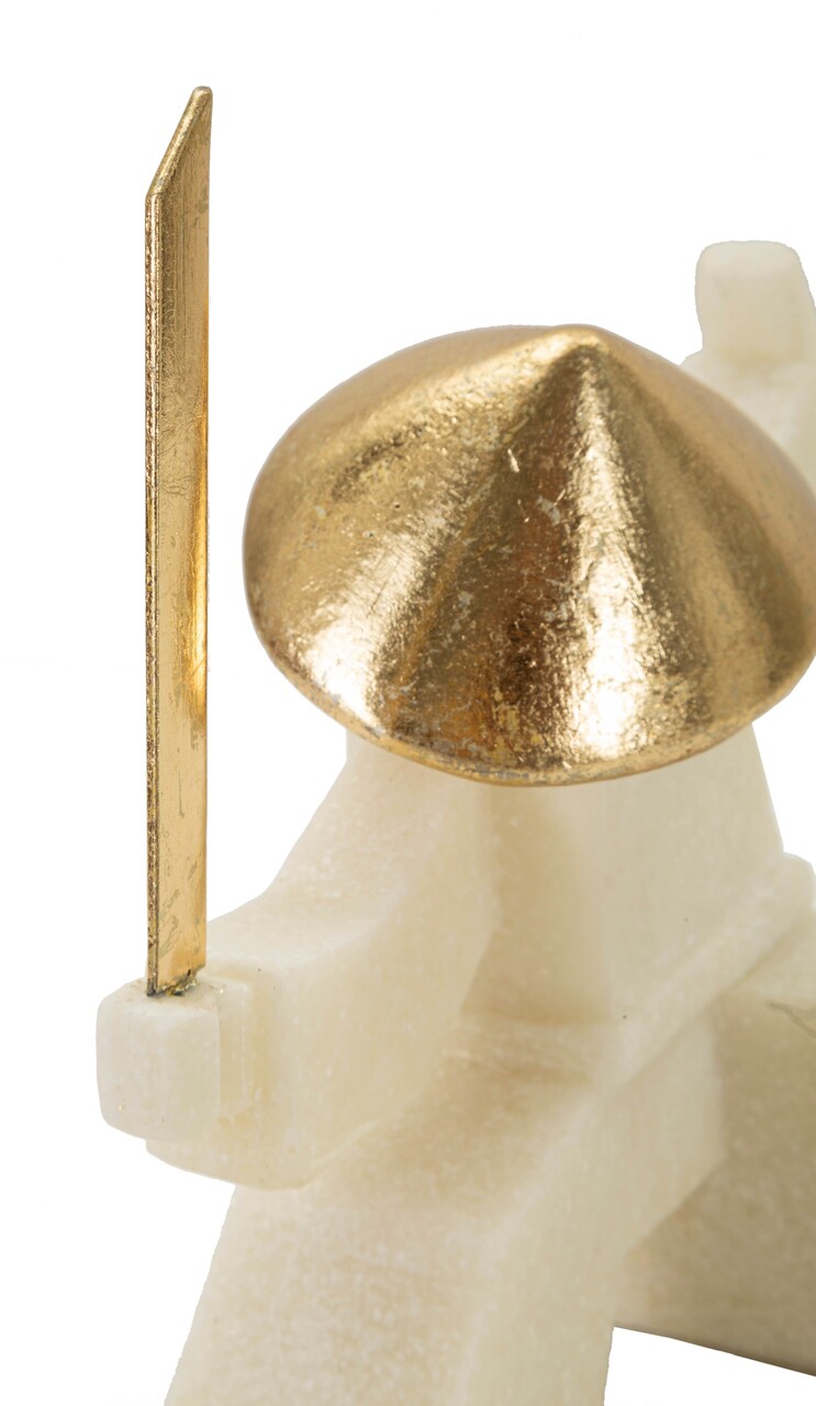 Statueta / figurina decorativa Samurai Oda Quarzy -A, Mauro Ferretti, 17x7.5x18.5 cm, polirasina/metal, alb/auriu