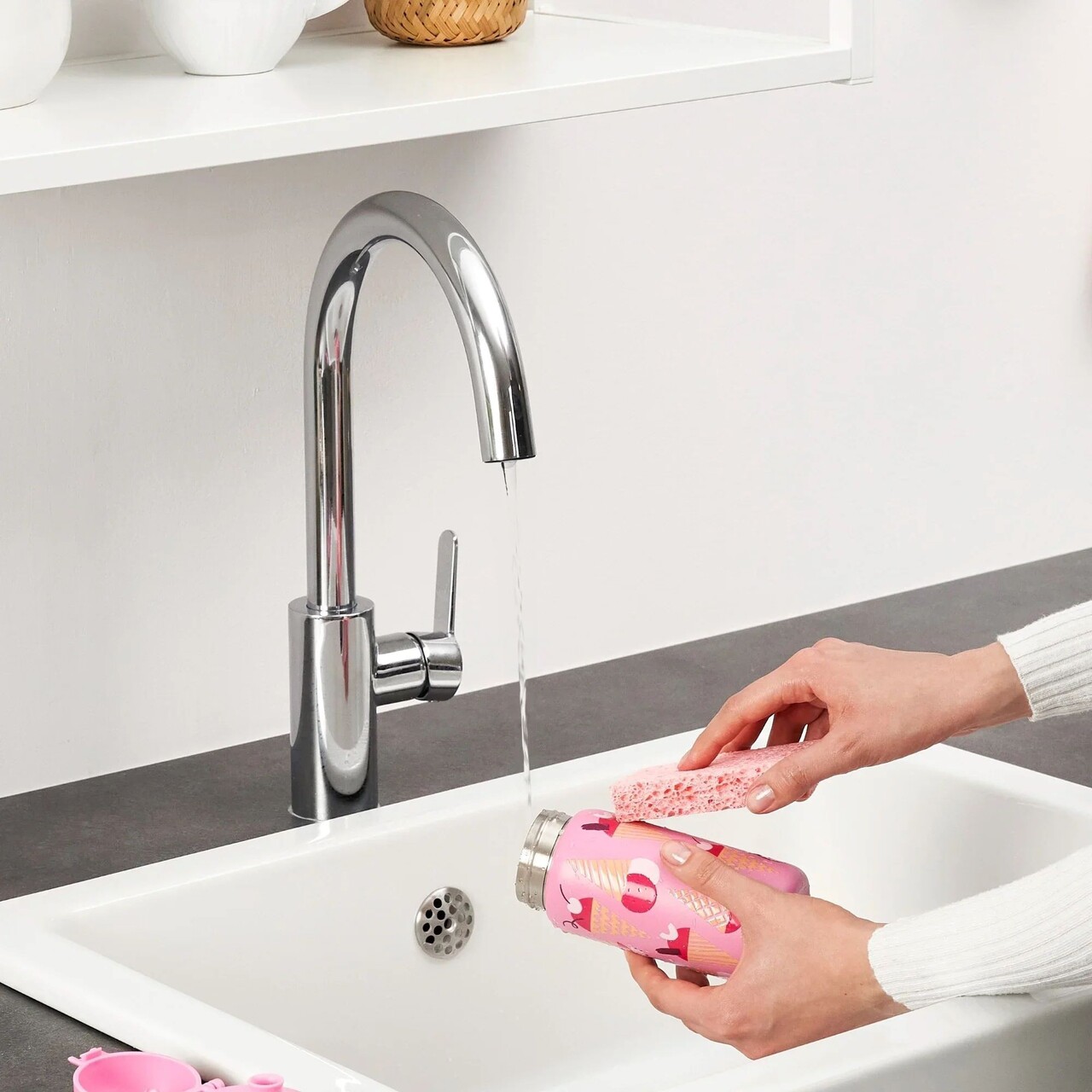 Clatiti sticla si capacul cu apa rece inainte de utilizare.Dupa utilizare, Clatiti doar cu apa calda si detergent de vase.Nu frecati cu perii sau materiale abrazive.Uscati bine la aer inainte de depozitare, Cu capacul inchis.Spalati manual sau folositi o masina de spalat vase pe un ciclu de spalare la rece.