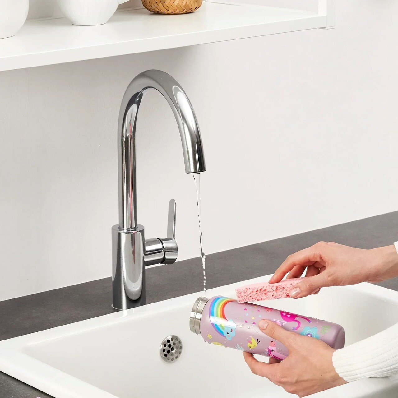 Clatiti sticla si capacul cu apa rece inainte de utilizare.Dupa utilizare, Clatiti doar cu apa calda si detergent de vase.Nu frecati cu perii sau materiale abrazive.Uscati bine la aer inainte de depozitare, Cu capacul inchis.Spalati manual sau folositi o masina de spalat vase pe un ciclu de spalare la rece.