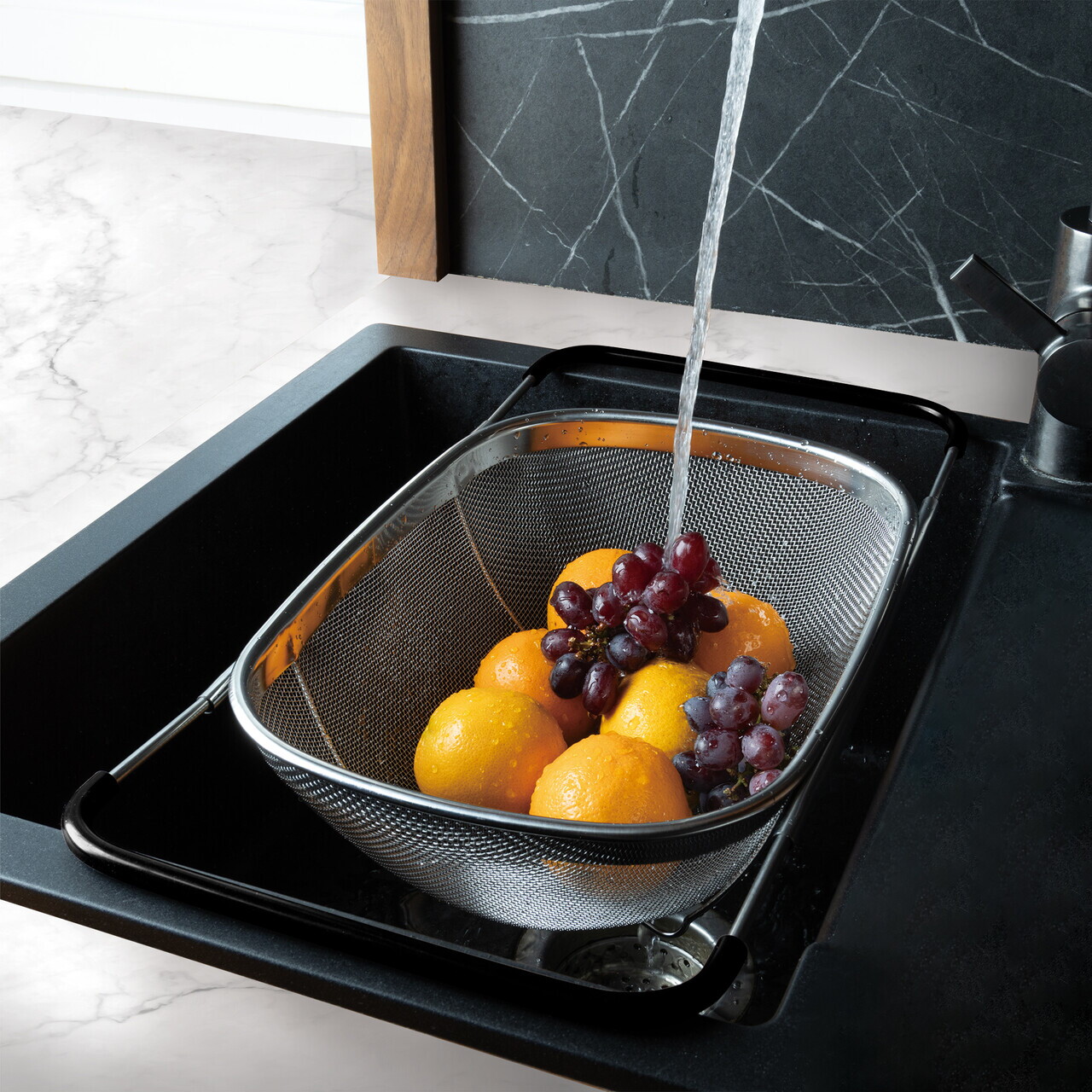 Asezati-l pe chiuveta cu ajutorul manerelor negre reglabile pentru o utilizare confortabila si practica
