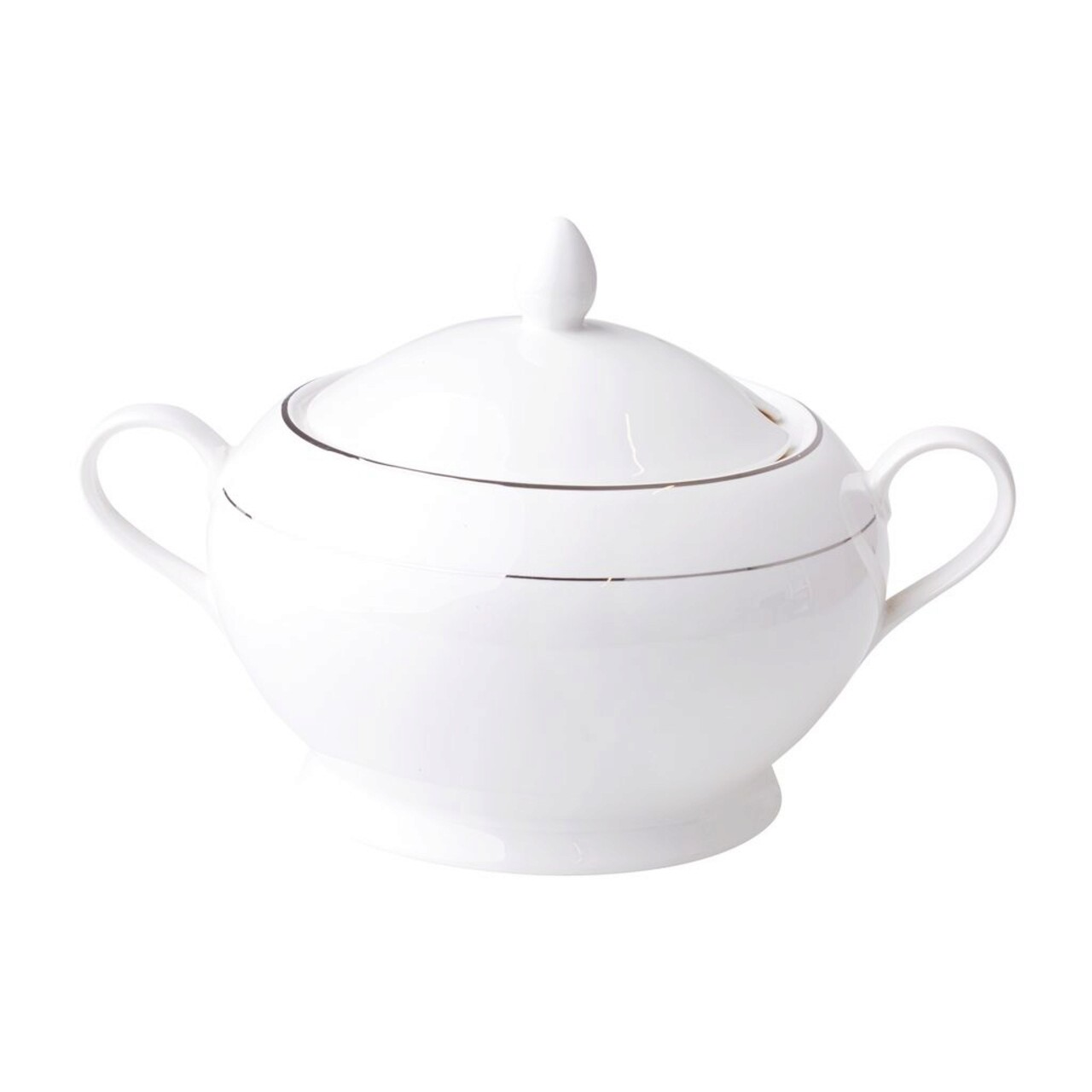 Supiera Ambition cu o capacitate de 2.8 litri. O linie de portelan exceptional de eleganta, decorata cu linii delicate de argint. Forma clasica si decoratia subtila o fac perfecta atat pentru interioarele traditionale, cat si pentru cele moderne. Portelanul New Bone China de înalta calitate, cu o nuanta alb-gri, este rezistent la rupturi si arata foarte exclusivist.