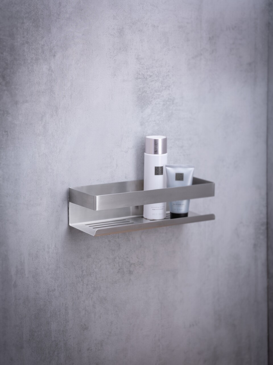 Suport accesorii baie, Wenko, Turbo-Loc, Genova Matt, 30 x 8 x 10.5 cm, inox, gri